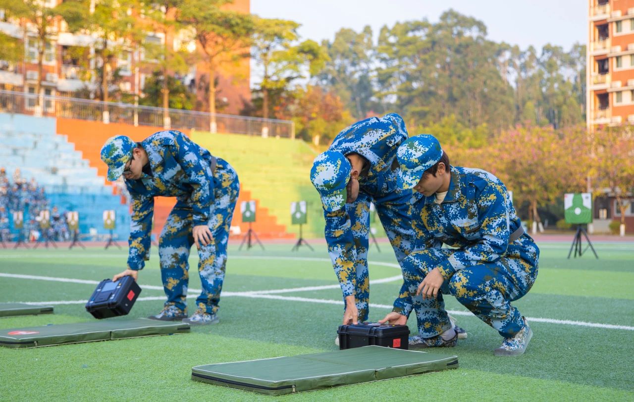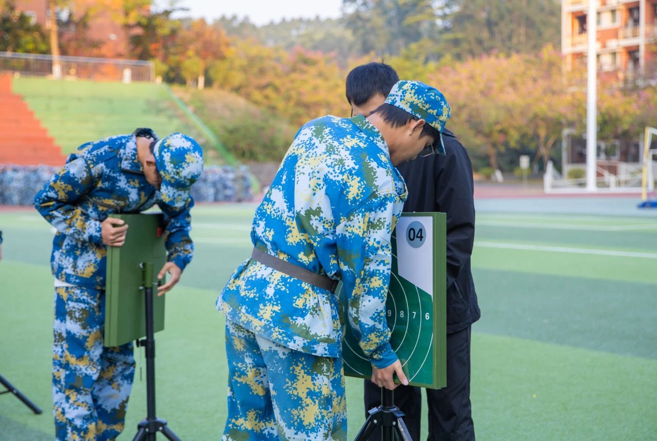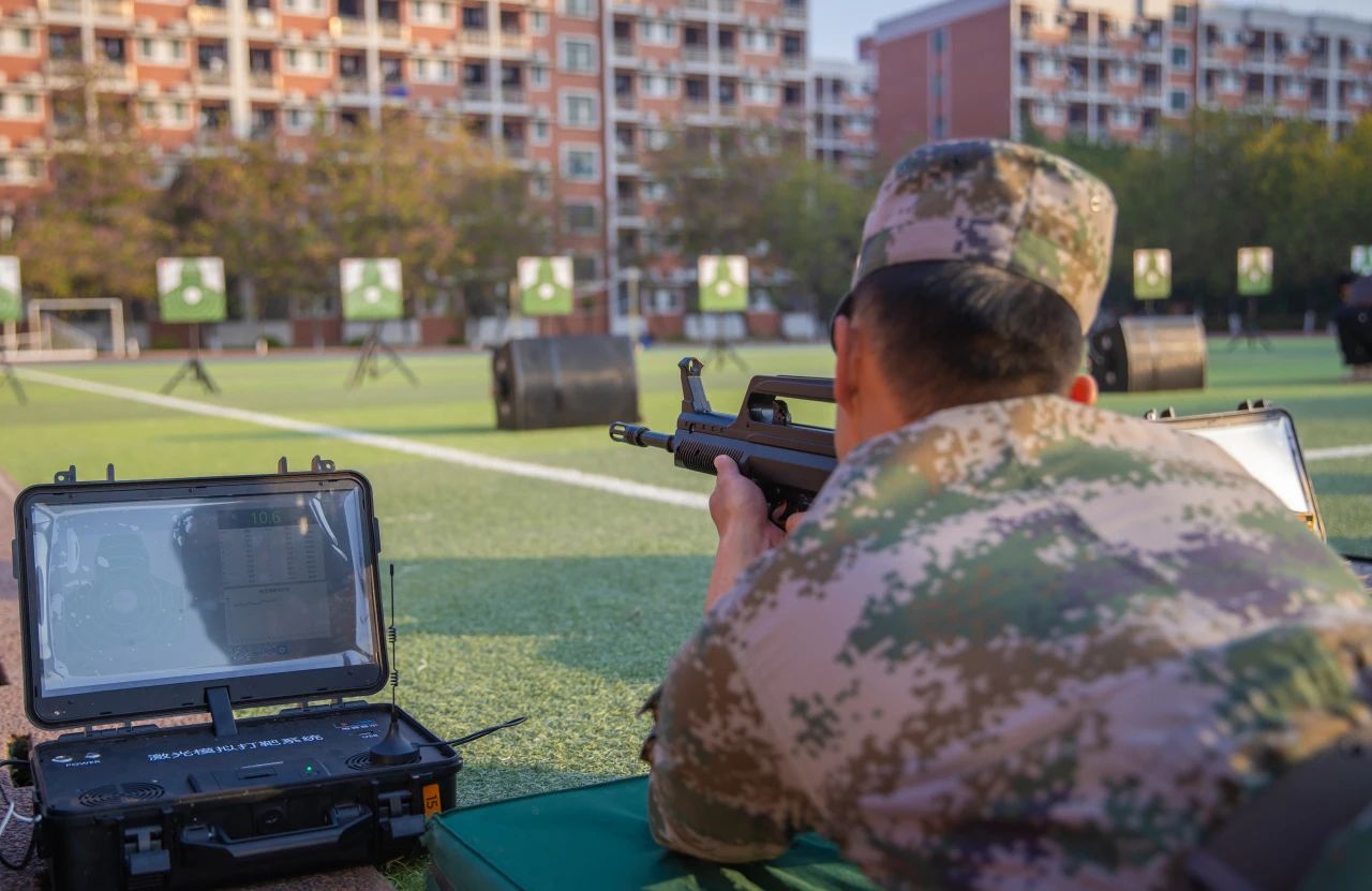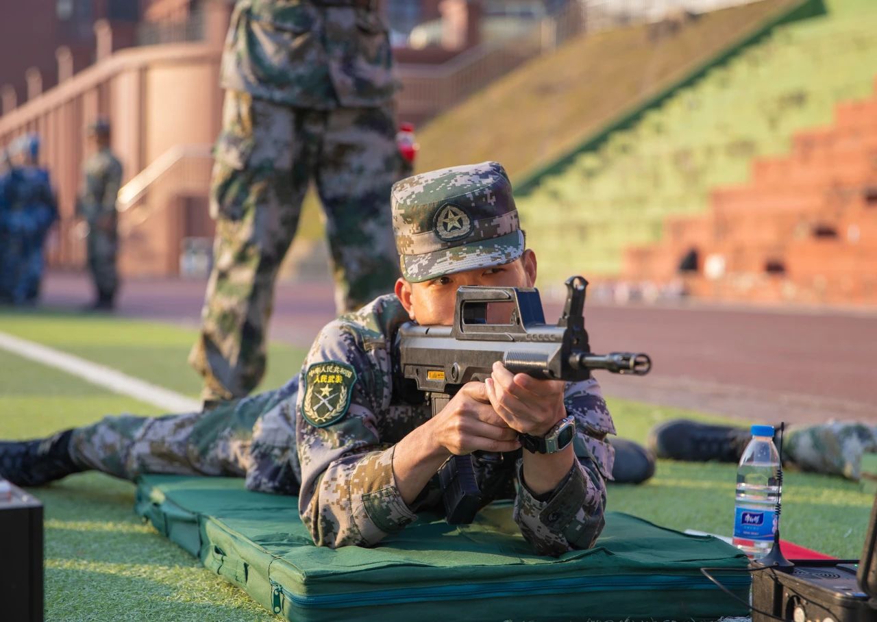 为确保训练效果,学校引进了24套先进的激光打靶模拟实弹射击设备,广州校区4900余名新生轮番上阵,“真枪实弹”体验轻武器射击,让这次新生军训“军味”十足。