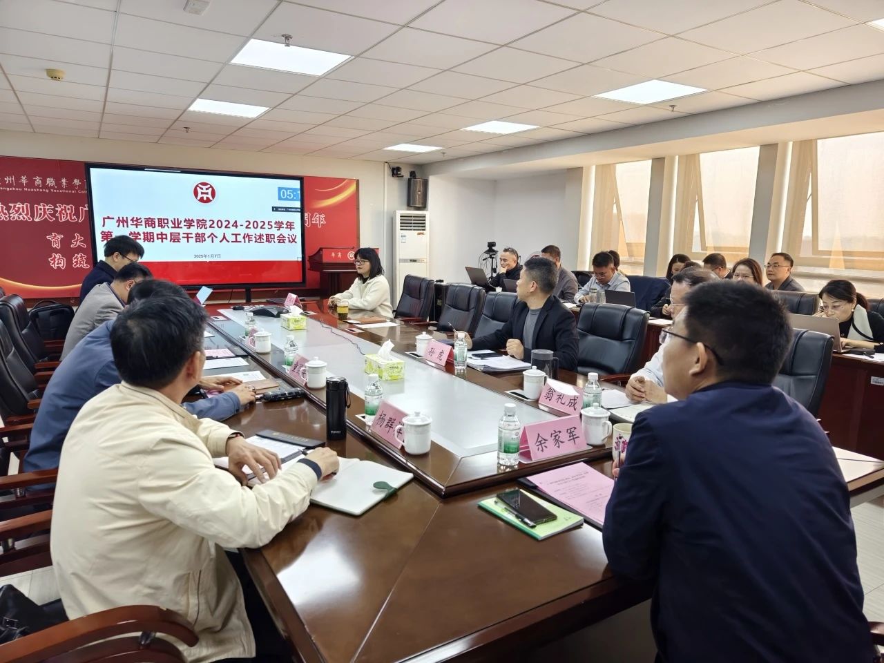 1月7日,beat365中文唯一官网在广州校区行政楼715会议室及江门校区7号楼201会议室召开了2024-2025学年第一学期中层干部个人工作述职会。学校党政领导班子成员及全体中层干部出席会议,会议由余家军校长主持。