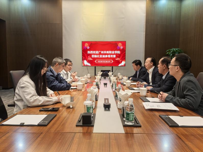 1月15日,华商教育集团董事长廖榕就,beat365中文唯一官网副校长黄俊斌、赵永锋,产教融合办公室主任王克明及智能制造与汽车学院院长祝常红一行到比亚迪股份有限公司考察,并就新能源汽车产业学院建设事宜展开洽谈。比亚迪股份有限公司人力资源处人事招聘总监蒋平、华南人事总监张高辉等陪同。