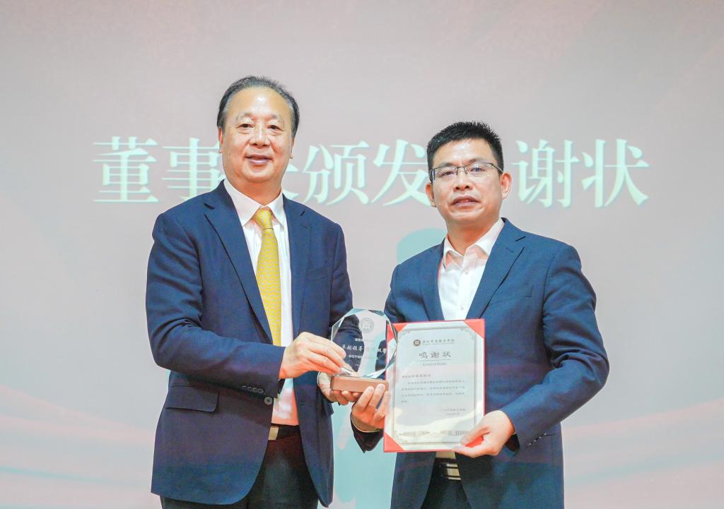 廖榕就董事长向余家军校长颁发了鸣谢状,以表彰他为学校发展做出的杰出贡献。