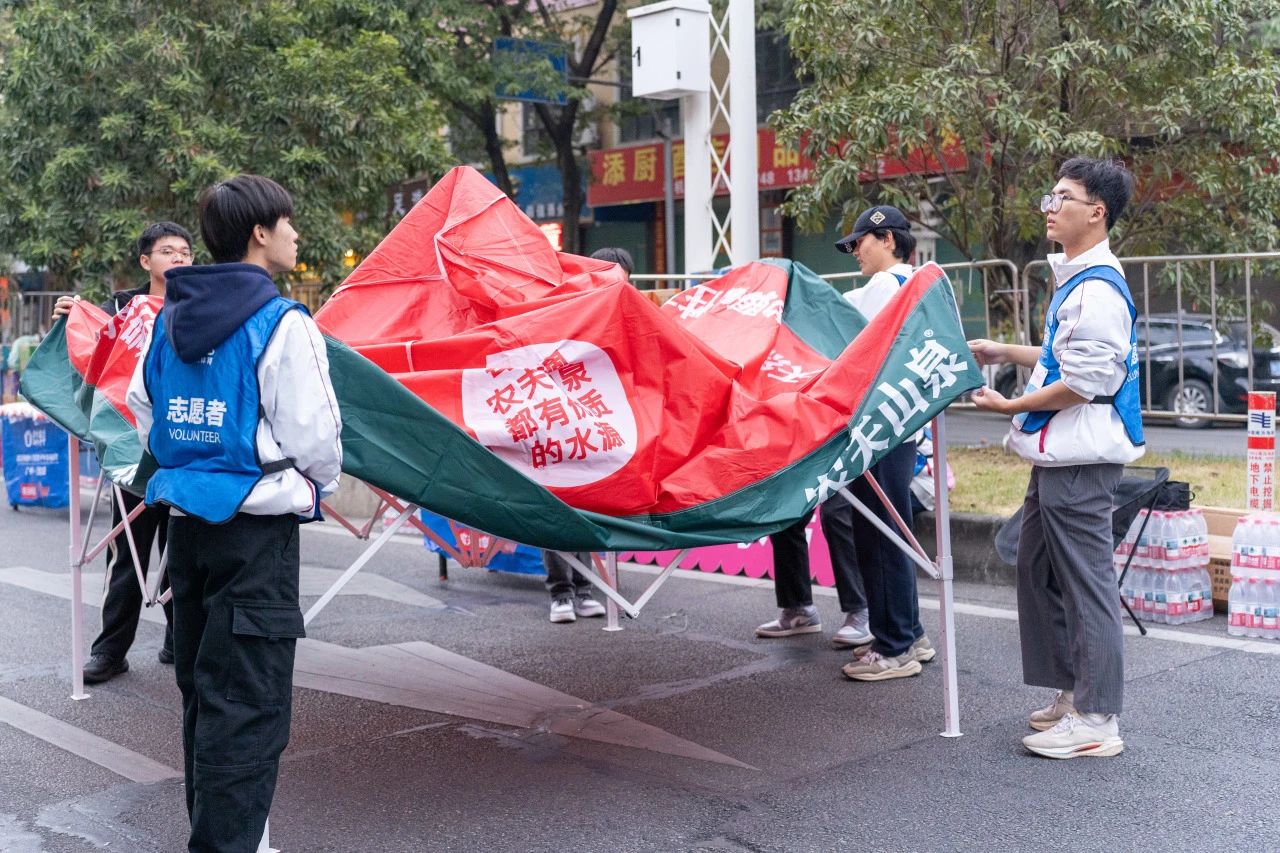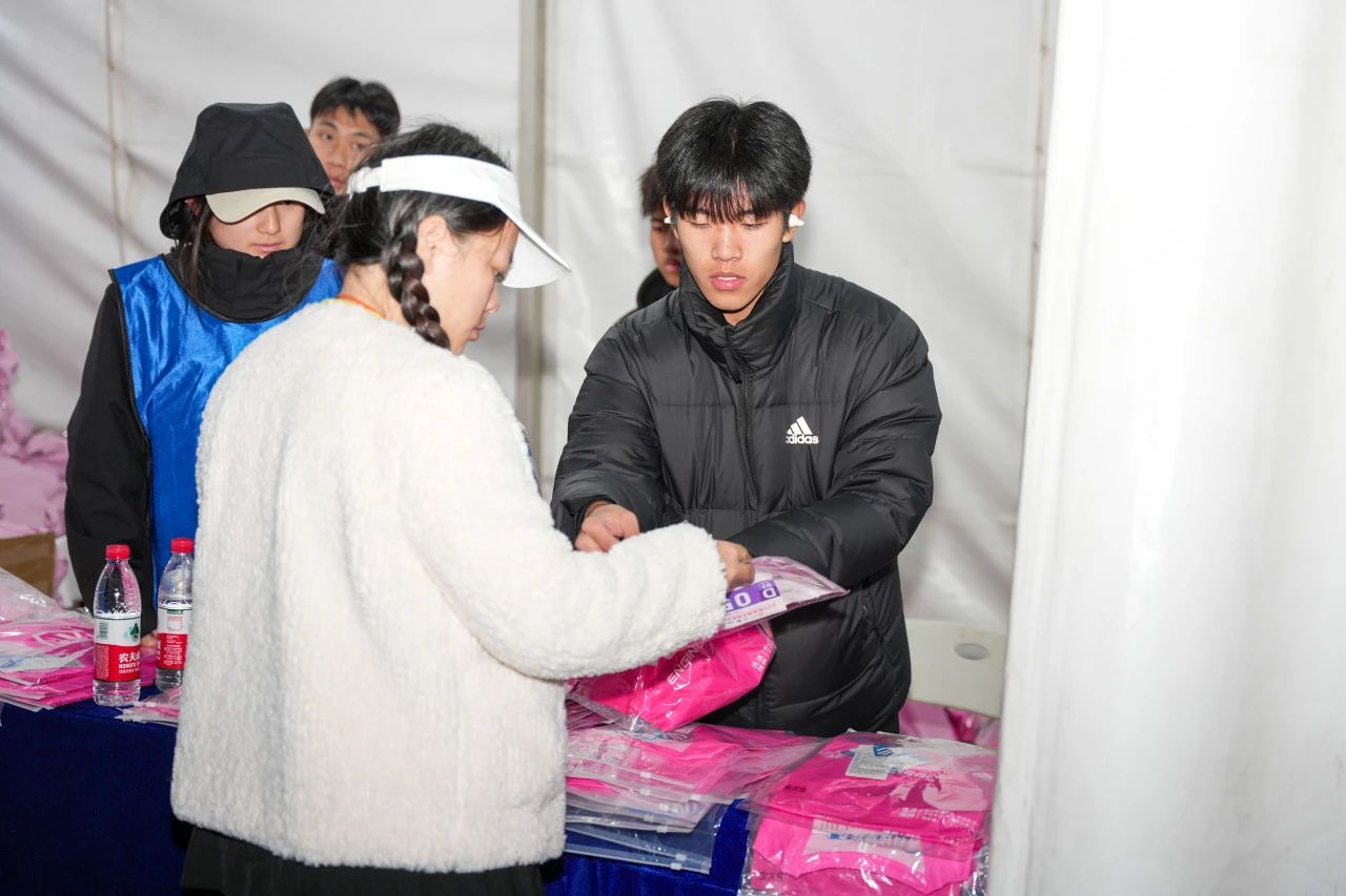 负责搭建补给站帐篷的志愿者们,双手被冰冷的金属支架冻得通红。可眼神中却透着执着,他们将帐篷迅速搭建起来为后续物资摆放腾出空间。