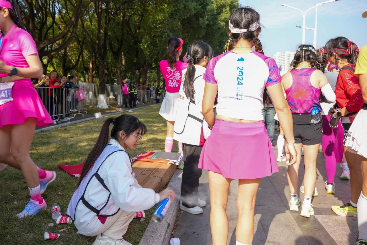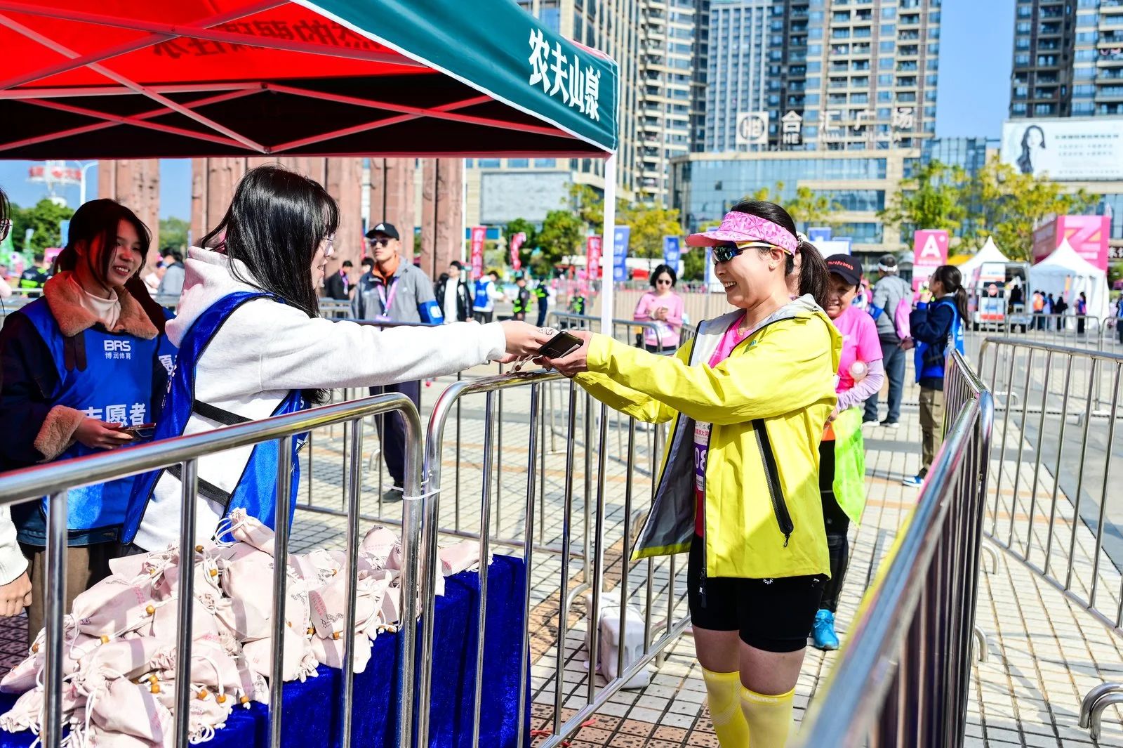 看!终点线宛如一道胜利的曙光而志愿者们就伫立其外,揣着热忱与期待,紧握着荣誉的象征--奖牌以及装满温暖的完赛物资。当选手们拼尽全力冲过终点的那一刻,志愿者们迅速且温柔地迎上前,庄重地为选手戴上那熠熠生辉的奖牌。接着递上物资用最温暖的声音说道“辛苦啦,恭喜完赛!”