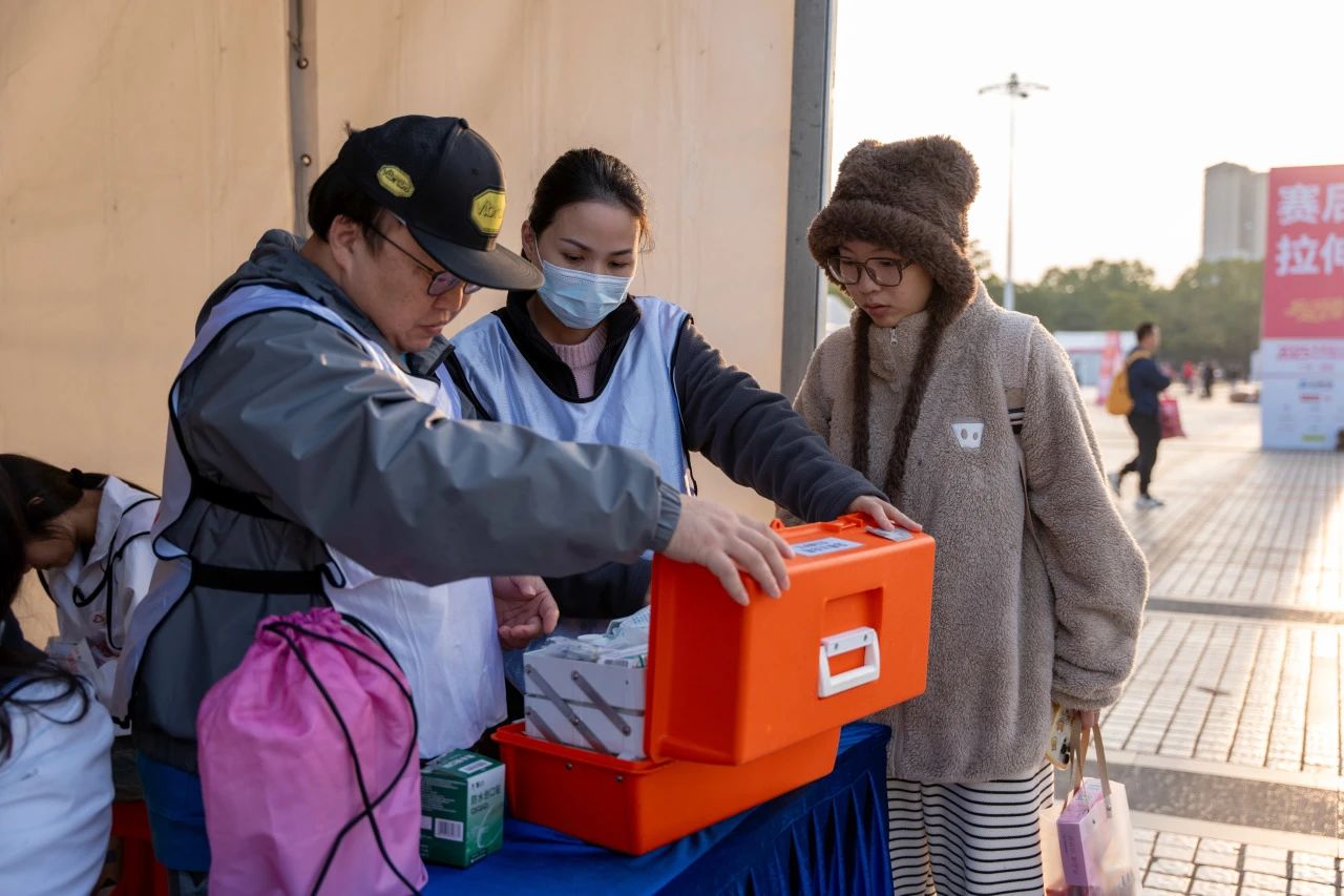 他们是半马赛道上的“守护天使”,赛道沿途的医疗志愿者们目光坚定,时刻准备着为参赛者提供最及时的救助。从起点到终点,他们一路坚守时刻保持警惕,紧盯着赛道上选手们的状况。一旦有人出现身体不适,便能在第一时间冲上前去,将培训时学到的急救技能派上了用场。他们在分秒必争中守护着选手们的安全,让赛道变成了一条有温度的保障线。
