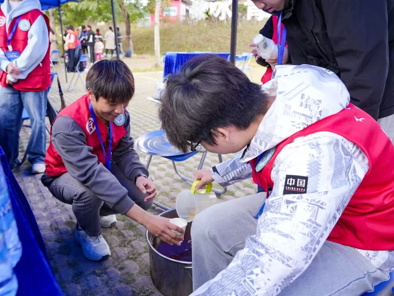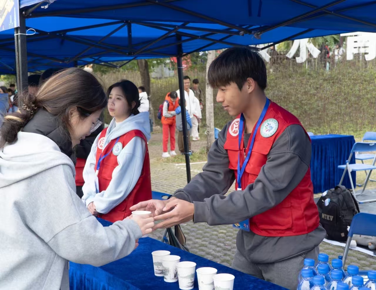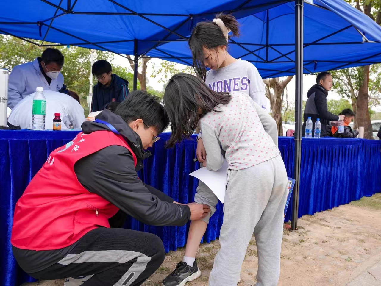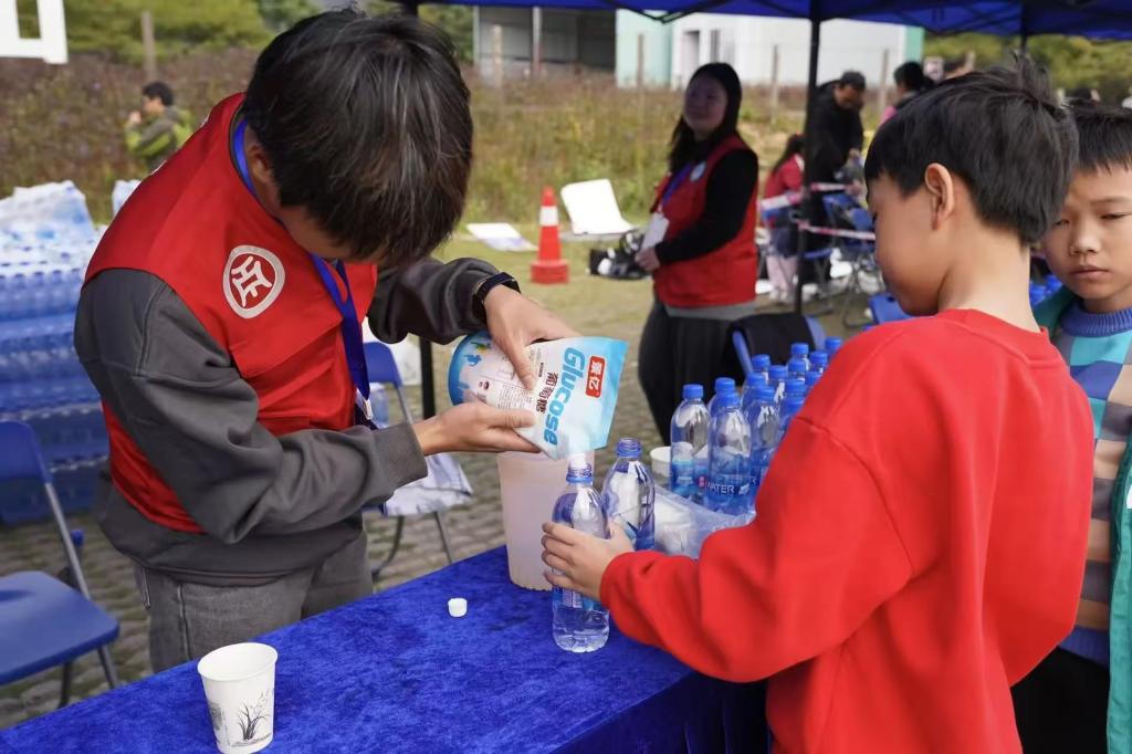 补给站的他们同样肩负着重要的使命。他们不停地忙碌着,为选手们准备充足的饮用水和能量食品。当选手们疲惫地来到补给站时,志愿者们热情地递上一杯水、一块面包,让选手们能够及时补充体力、恢复精神,有的选手在比赛中受了伤,华职志愿者们小心翼翼地搀扶着他们,到医疗点进行处理,关切的眼神和贴心的照顾,让选手们倍感温暖。