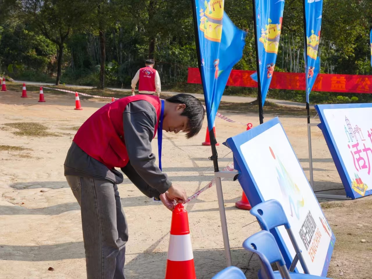 比赛当天,寒风凛冽,气温低迷。但华职志愿者们身着统一的志愿服装,早早地抵达增城白水寨旅游区的各个岗位,他们身姿挺拔、眼神中透着热忱与专注,没有丝毫对寒冷的抱怨和退缩,精神饱满地迎接即将到来的挑战。