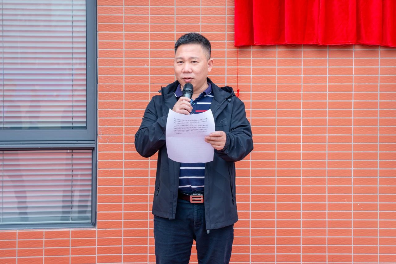 随后,揭牌仪式在11号楼启超书院进行。崖门镇党委副书记曾伟壮上台致辞,表达了对双方合作的美好期待与坚定信心。双方与会人员共同为培训基地揭牌。