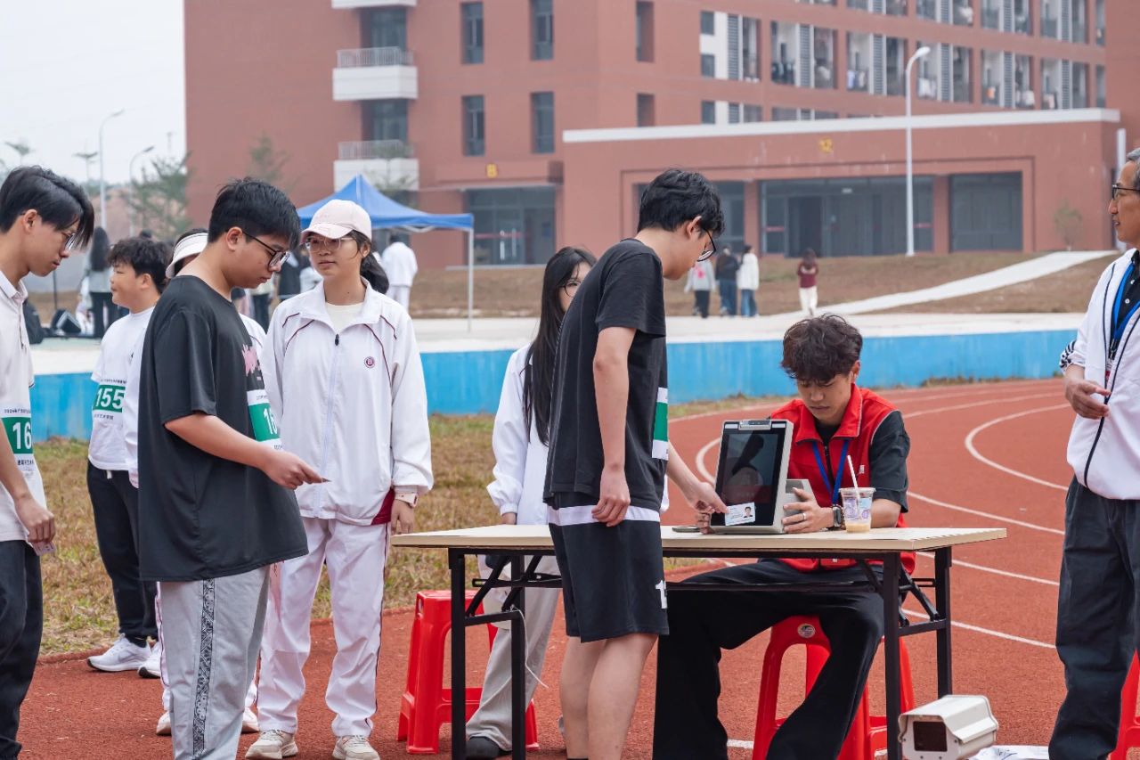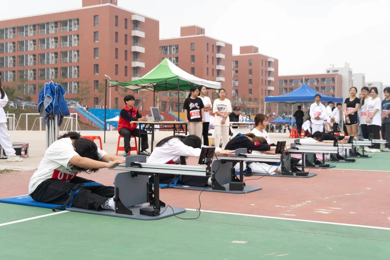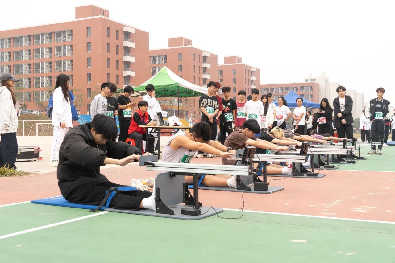 在测试现场,江门校区西北面篮球场检录处和热身区秩序井然。身高/体重、肺活量、立定跳远、坐位体前屈、一分钟仰卧起坐(女)、引体向上(男)等6个项目在北面篮球场一字排开。50米跑、800米跑(女)、1000米跑(男)项目则在跑道上依次开展。同学们积极配合,奋勇争先,展现了华商职院学子良好的精神风貌。