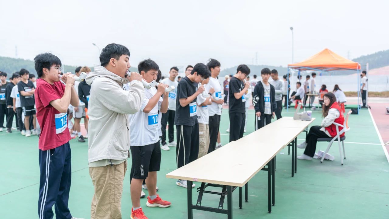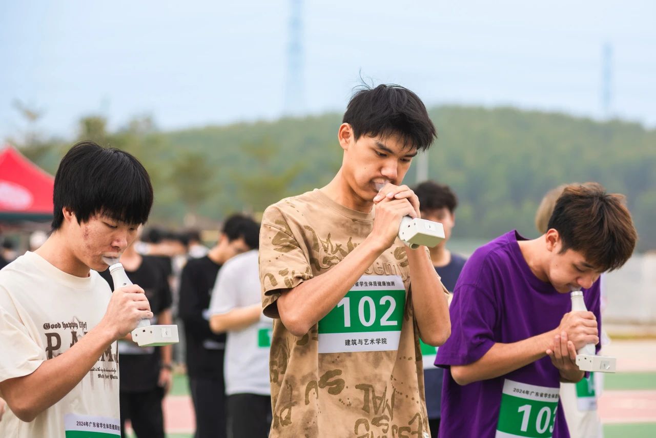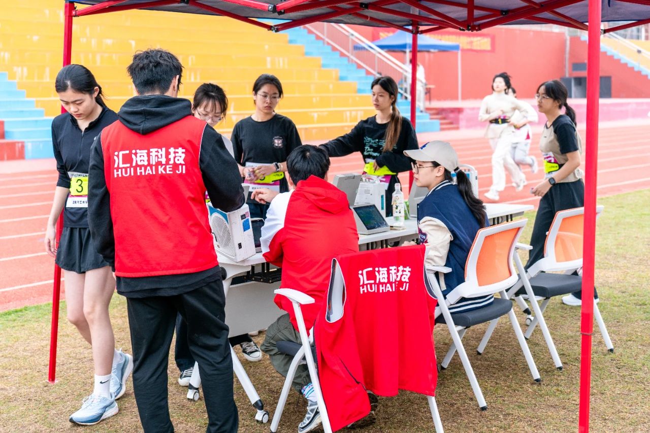 在测试现场,江门校区西北面篮球场检录处和热身区秩序井然。身高/体重、肺活量、立定跳远、坐位体前屈、一分钟仰卧起坐(女)、引体向上(男)等6个项目在北面篮球场一字排开。50米跑、800米跑(女)、1000米跑(男)项目则在跑道上依次开展。同学们积极配合,奋勇争先,展现了华商职院学子良好的精神风貌。