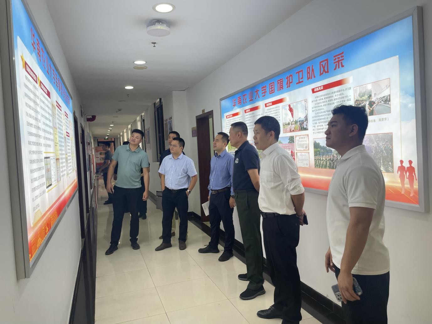 随后,访问团一行来到华南农业大学。华南农业大学在国防教育方面有着丰富的经验和卓越的成果。广东省普通高校军事教学指导委员会委员、理论指导组长,华南农业大学马克思主义学院国家安全与国防教育教研室主任王向方教授以及党委保卫部部长罗军、副部长唐军梅、军训教官团参谋长敬泽龙、副参谋长聂立华、教研室教师欧阳娟老师和聂锐老师全程参与了学习交流活动。