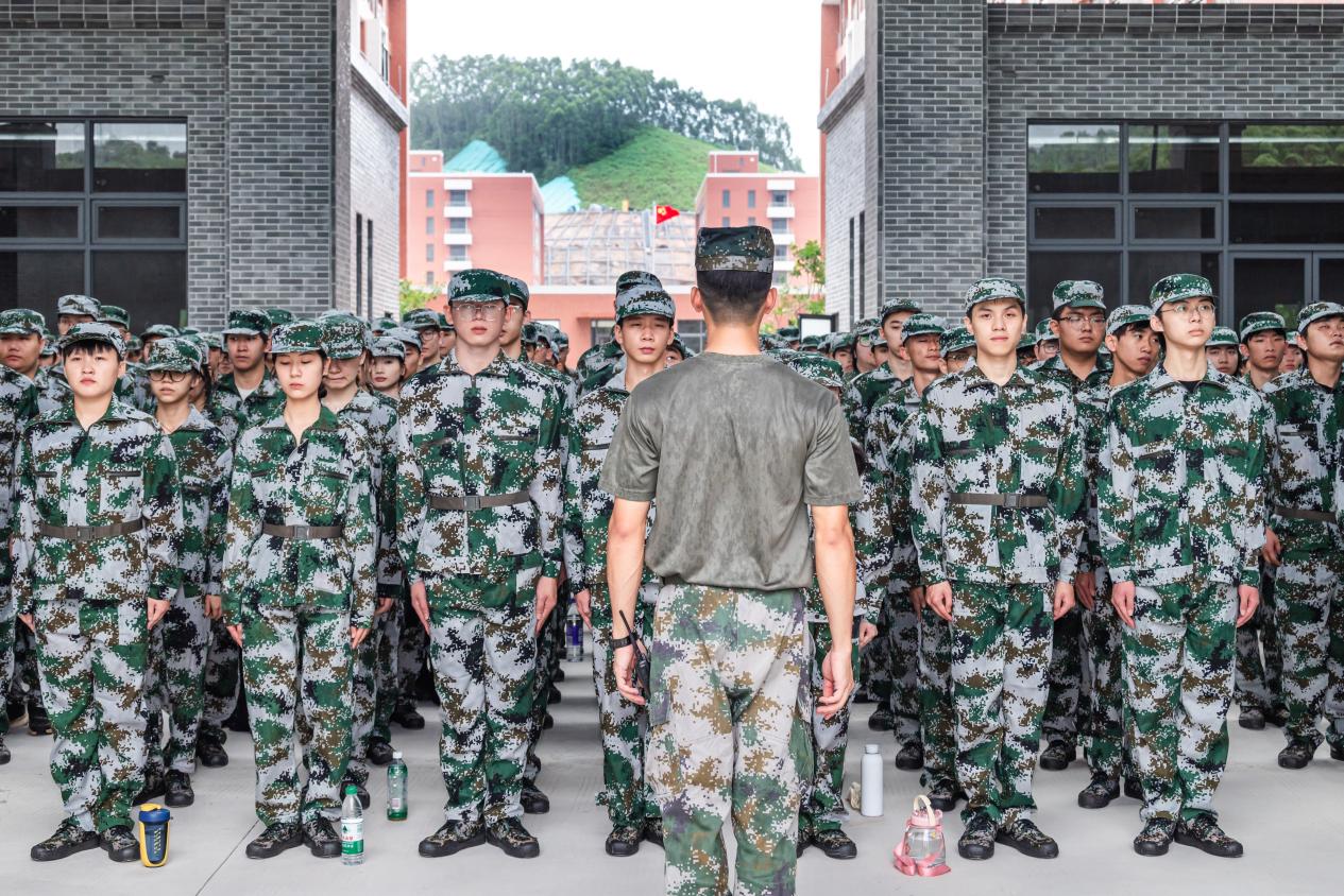 “准备军姿,稍息,立正,向右看齐!”在营长铿锵有力的口令下,各连队新生立刻做出响应。调整姿态、整理军容。横成线,竖成列,新生方队整齐划一,动作协调一致,目光坚毅地注视前方。强纪律,促作风,军训首训,新生们快速融入军训氛围,自觉接受身体的锻炼和精神的洗礼。