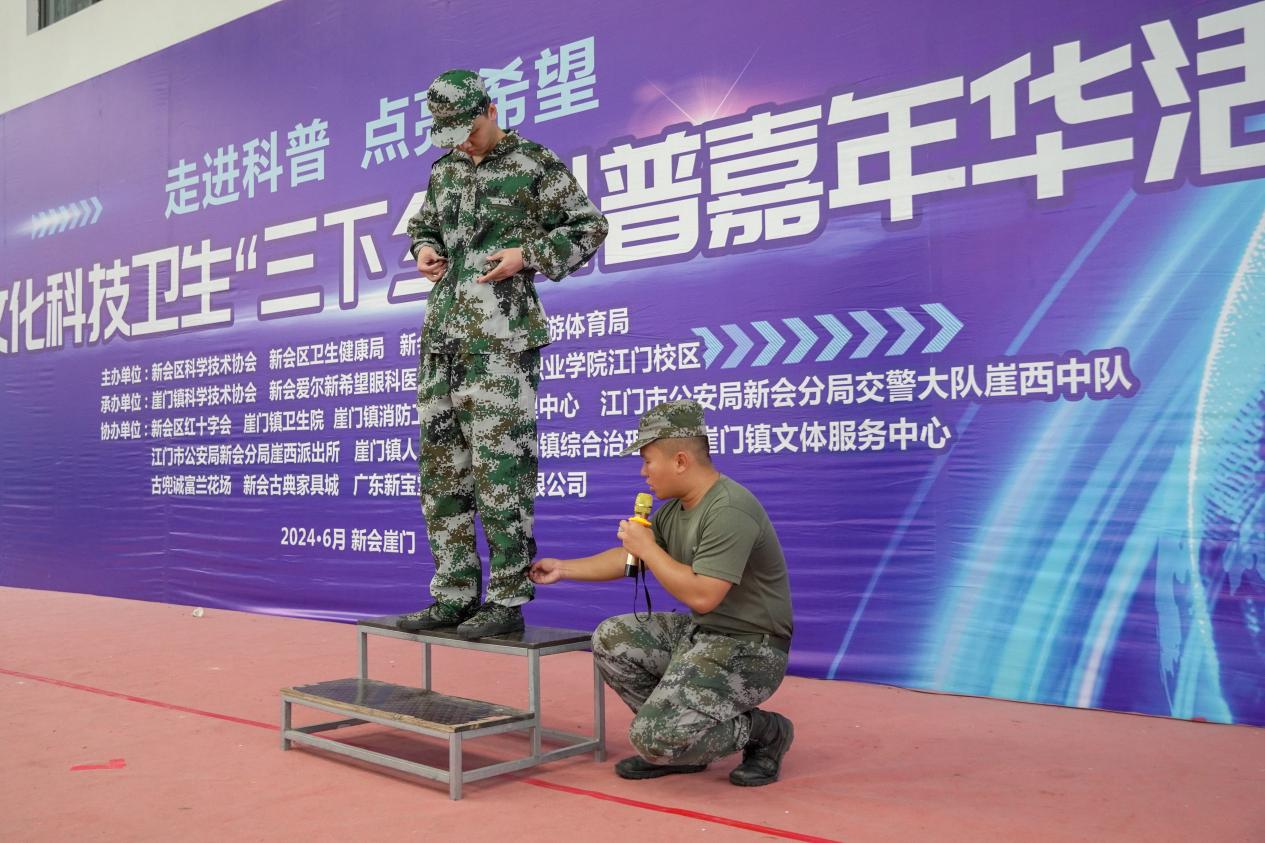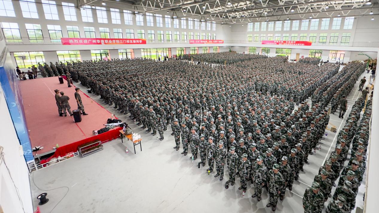 在文体馆内,营长正向新生们展示如何规范着装。从端正地佩戴帽子到仔细扣好衣上的每一颗纽扣,系紧腰带、绑紧鞋带,每一个细节都彰显出军人对自身严格要求的精神。