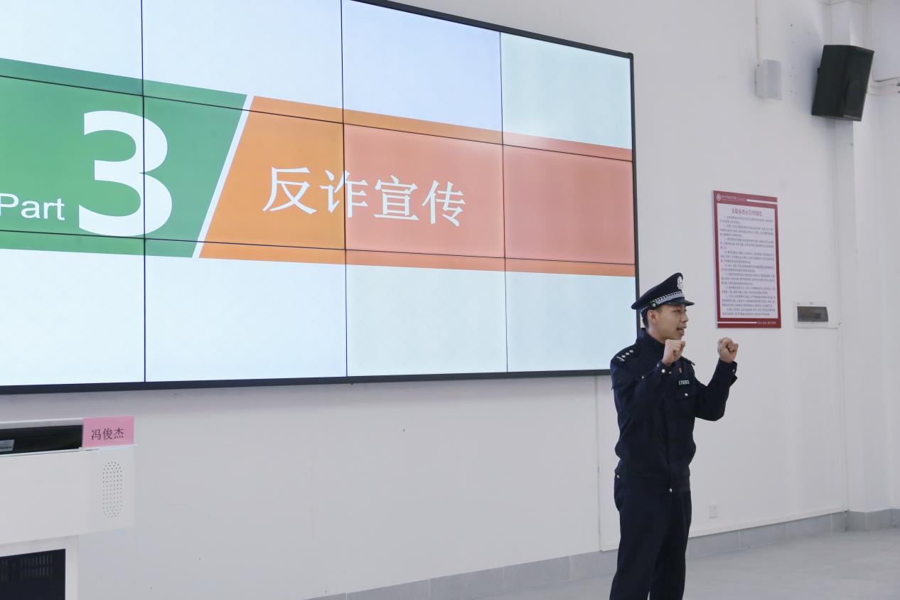 (冯俊杰副所长为江门校区学生宣传反诈知识)