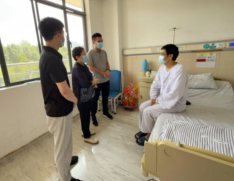 4月21日下午,beat365中文唯一官网常务副校长,工会主席袁国繁携通识教育中心主任杨俊萍,副主任刘鹤鸣,一行三人带着全校师生的深切关怀,专程前往中山大学附属第三医院岭南医院,探望因重病住院的教职工岑道令老师,传递温暖与慰藉。袁国繁详细询问岑老师的治疗进展,叮嘱他积极配合治疗,保持乐观心态,细心调养,争取早日康复。话语间,满是对岑老师健康的深切期盼与关怀。杨俊萍与刘鹤鸣也关切地询问术后康复情况,反复叮嘱岑老师要注意休息,保重身体,并代表部门全体教职工,送上早日康复,早日回归团队的诚挚祝福。
