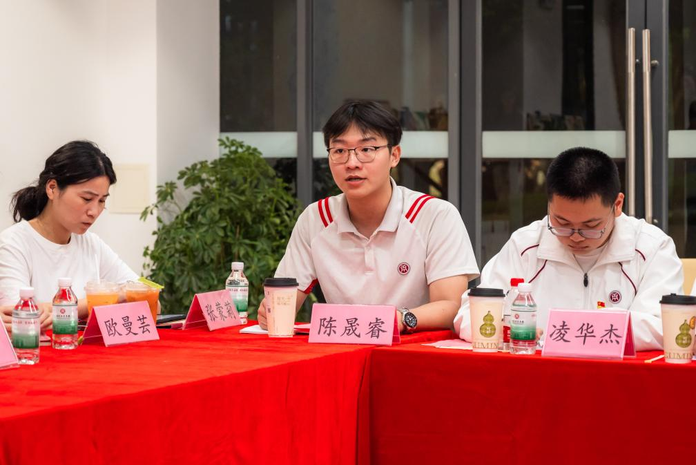 与会学生代表逐一作自我介绍。他们结合自身经历,提出了诸多富有建设性的意见和建议。从校区建设到校园发展,从校园生活到教育教学,学生们积极反映问题,并向学校领导提出了切实可行的建议,充分展现了当代大学生的责任担当与时代精神。