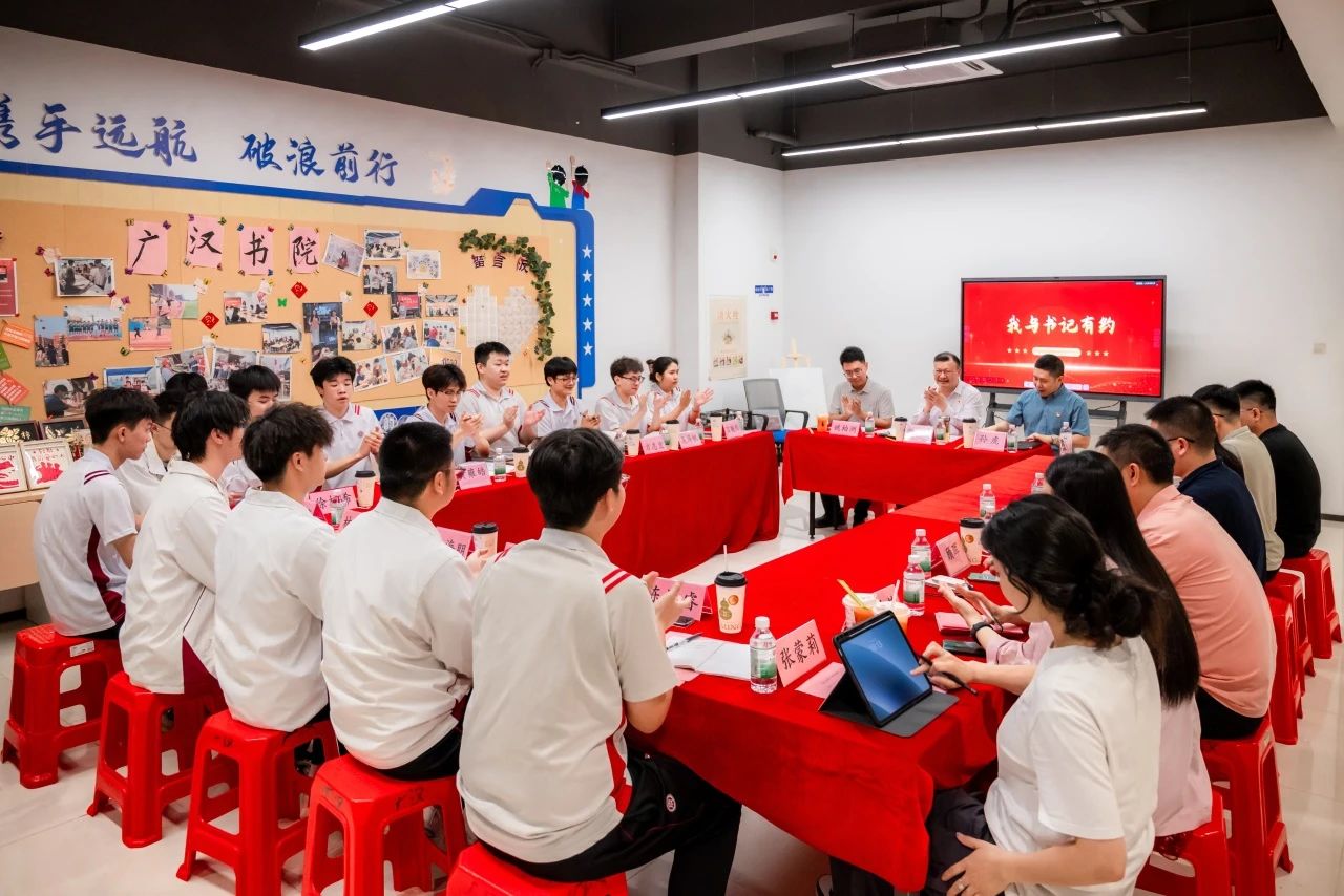 2025年4月22日晚,由beat365中文唯一官网学务部主办,广汉书院承办的“我与书记有约”座谈会在广汉书院学思苑隆重举行,受到了学校领导及学生代表们的热烈响应和积极参与。党委书记翁礼成、副校长孙虎、学务部副部长陆孟彤等领导莅临现场,与各二级学院专职副书记一同出席。他们与学生干部代表们围坐一堂,深入交流,共同探讨新时代下的使命与担当。座谈会由孙虎主持。
