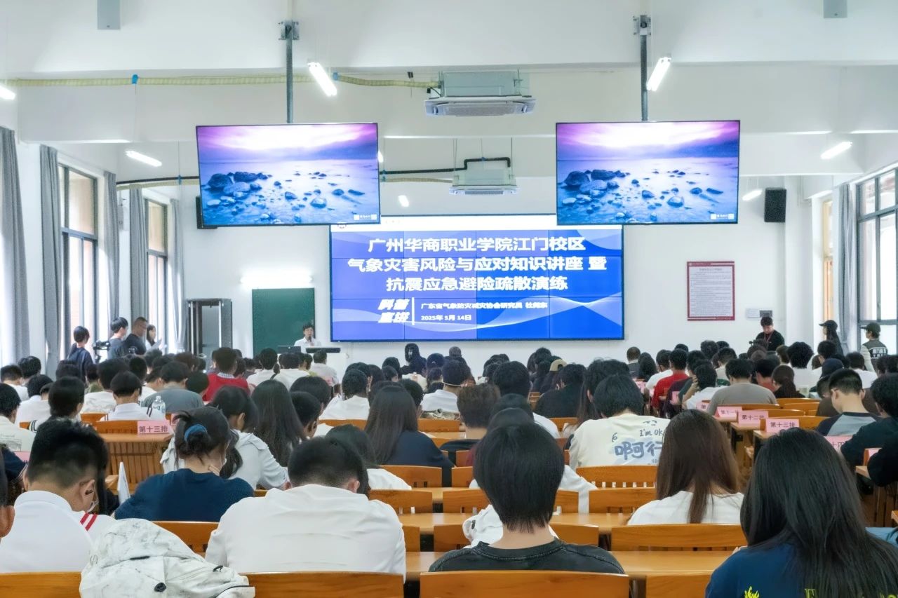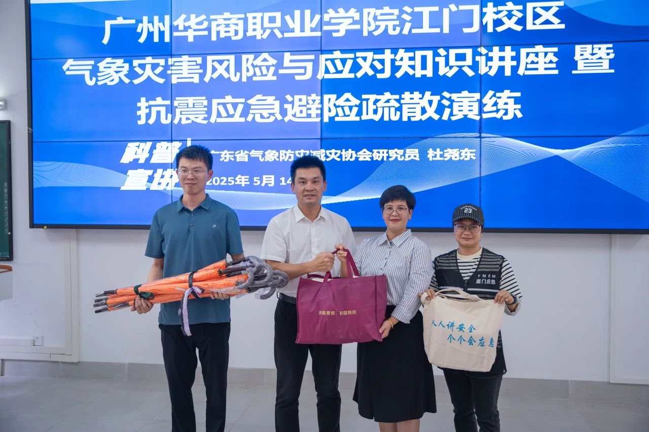 5月14日下午,beat365中文唯一官网江门校区在2号楼和中央广场举行气象灾害风险与应对知识讲座暨抗震应急避险疏散演练活动。本次活动由江门校区综合办公室牵头组织,校服中心、学务部和各二级学院共200多名师生共同参与。广东省气象防灾减灾协会研究员杜尧东,副秘书长黄艳;江门市新会区气象局党组书记、局长吴兆国,党组成员、纪检组长黄耀波及崖门镇人大主席林奕欢、镇应急管理办副主任区永康出席活动。