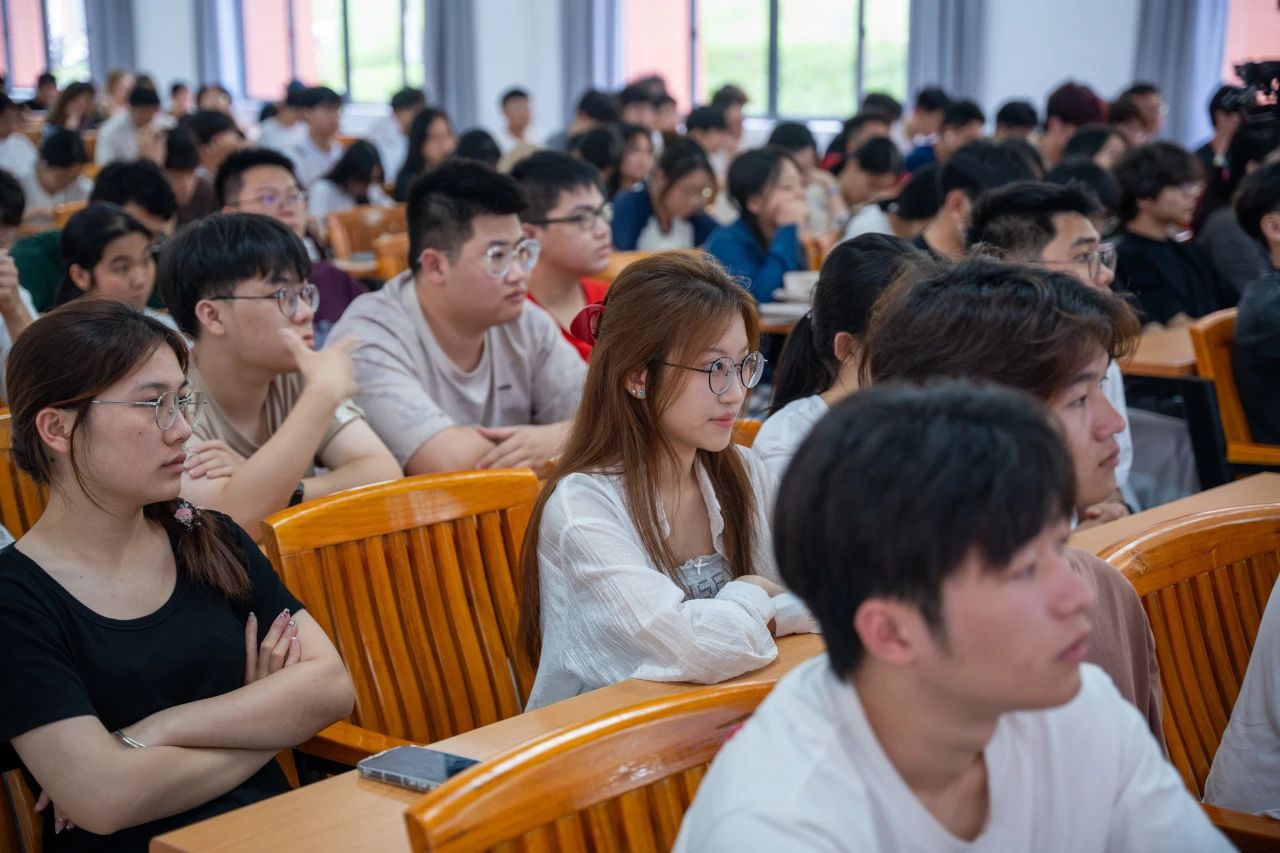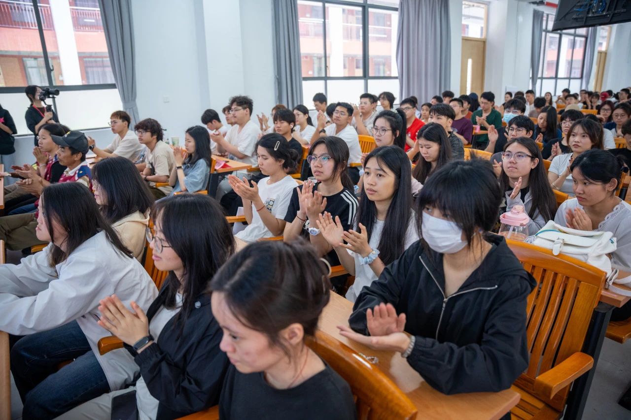 杜尧东以“地球发烧了且易暴躁”的新颖比喻,深入剖析各类气象灾害背后的成因与潜在风险。他强调,面对气候变化,人类并非无能为力。从人类活动和自然和谐共生的理念出发,我们应积极行动起来,推行大规模脱碳计划,减少碳排放,同时采取措施适应气候的变化。杜尧东的讲解深入浅出、栩栩如生,现场师生听得全神贯注,不时爆发出热烈的掌声。
