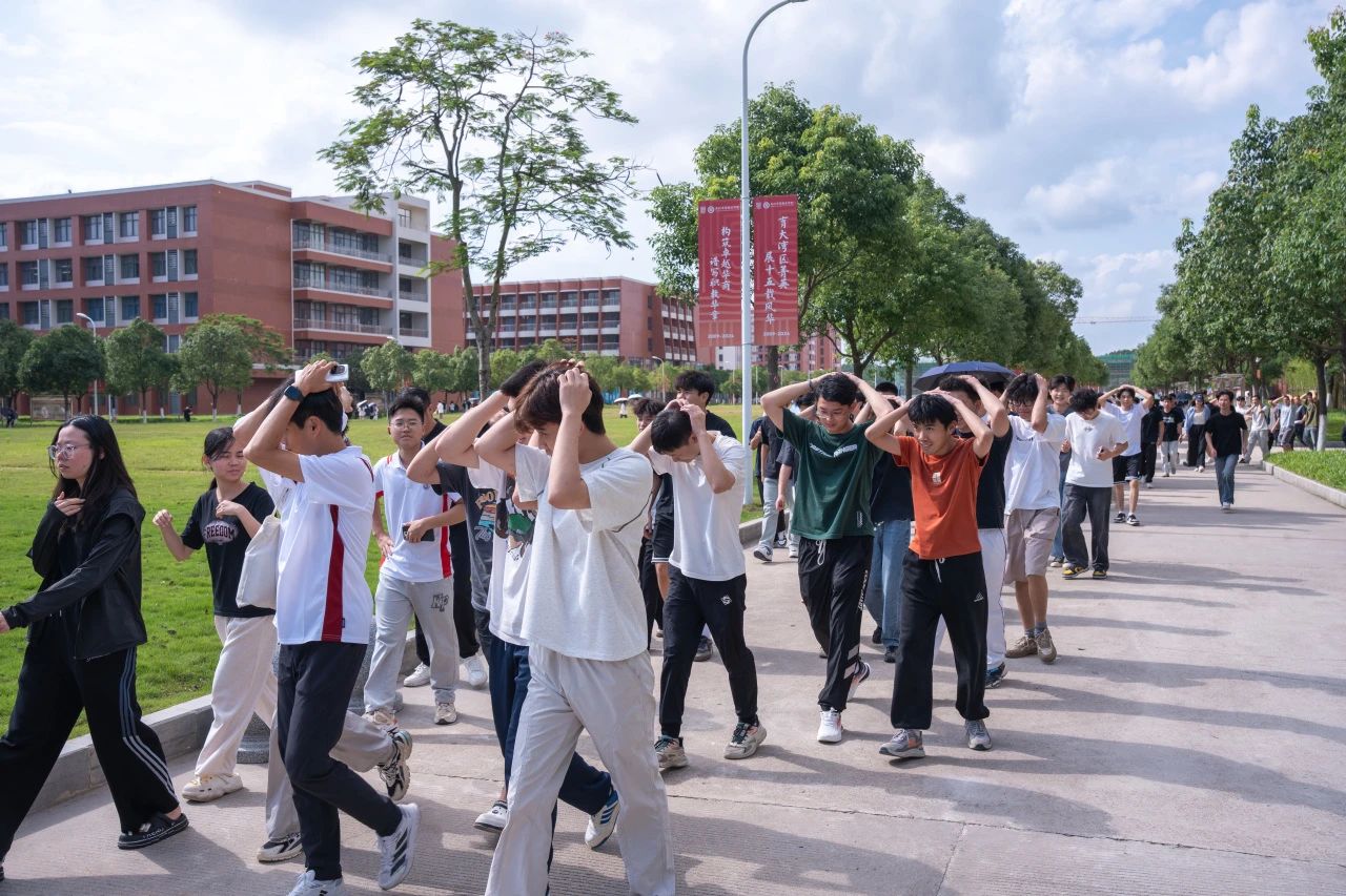 随着校园警报骤然拉响,尖锐的鸣笛声划破宁静,本次活动的实战演练环节正式开启。刺耳的警报声中,教室里的师生们迅速反应,沿着预定疏散路线,井然有序地朝着中央广场安全区域撤离。整个疏散过程中,校园里只回荡着急促而整齐的脚步声,大家保持安静、动作迅速,仅3分钟,全体师生便安全集结完毕,顺利达成预期演练效果。