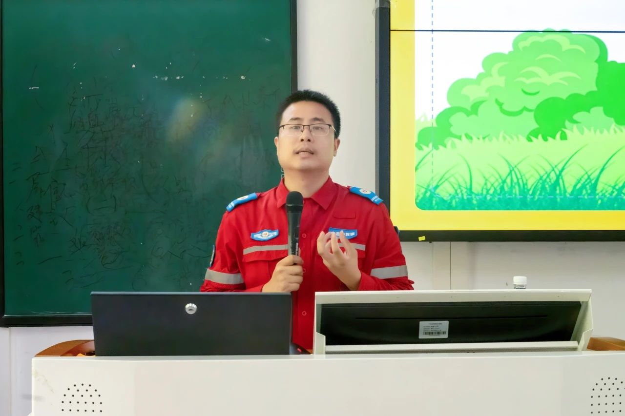 在气象灾害风险与应对知识宣讲环节,广东省气象防灾减灾协会研究员杜尧东化身“气象科普使者”,他形象地将地球比作一个会“闹情绪”的生命体,用一个个震撼人心的真实案例,带师生们“亲历”全球各地的气象灾害,让师生们深刻感受到气象灾害的破坏力。