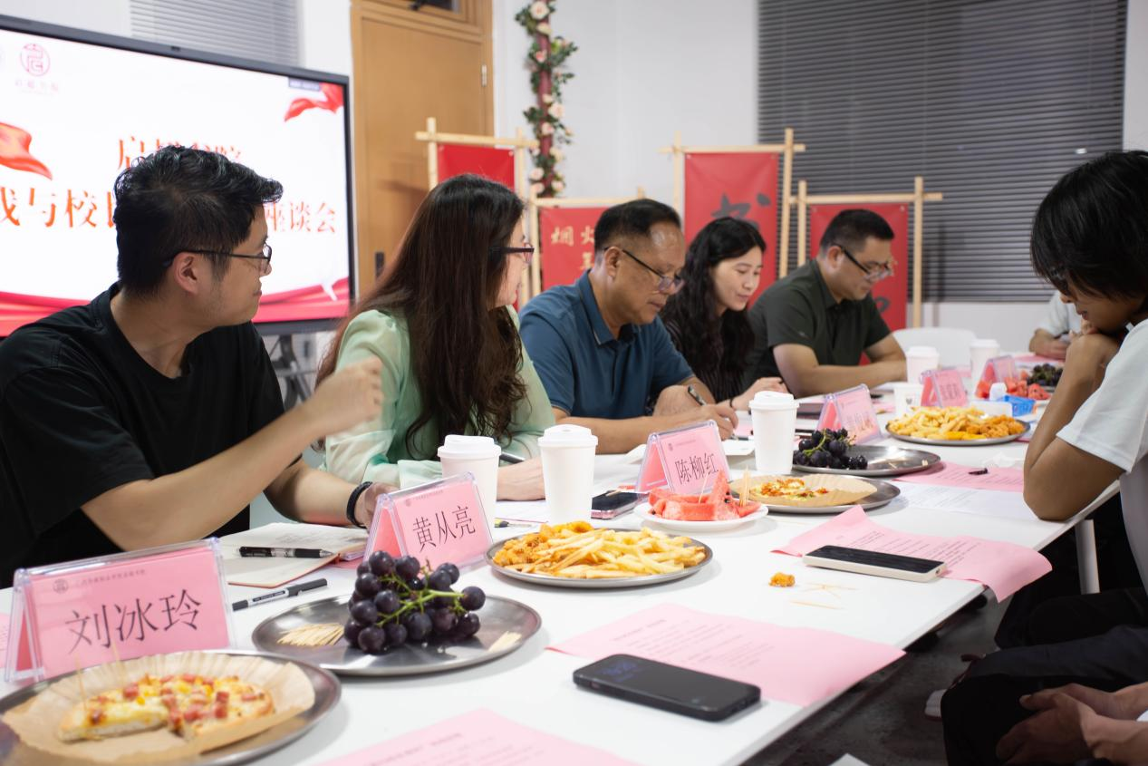 学校副校长黄俊斌及中层干部代表、教师代表与20余名学生代表围坐交流,座谈会由建筑与艺术学院副院长张蒙莉主持。座谈会上,学生围绕课程设置、实践教学、宿舍管理、校园设施等议题畅所欲言,既有对智慧教室设备升级的认可,也提出了延长图书馆开放时间、增设跨学科选修课等建设性意见。
