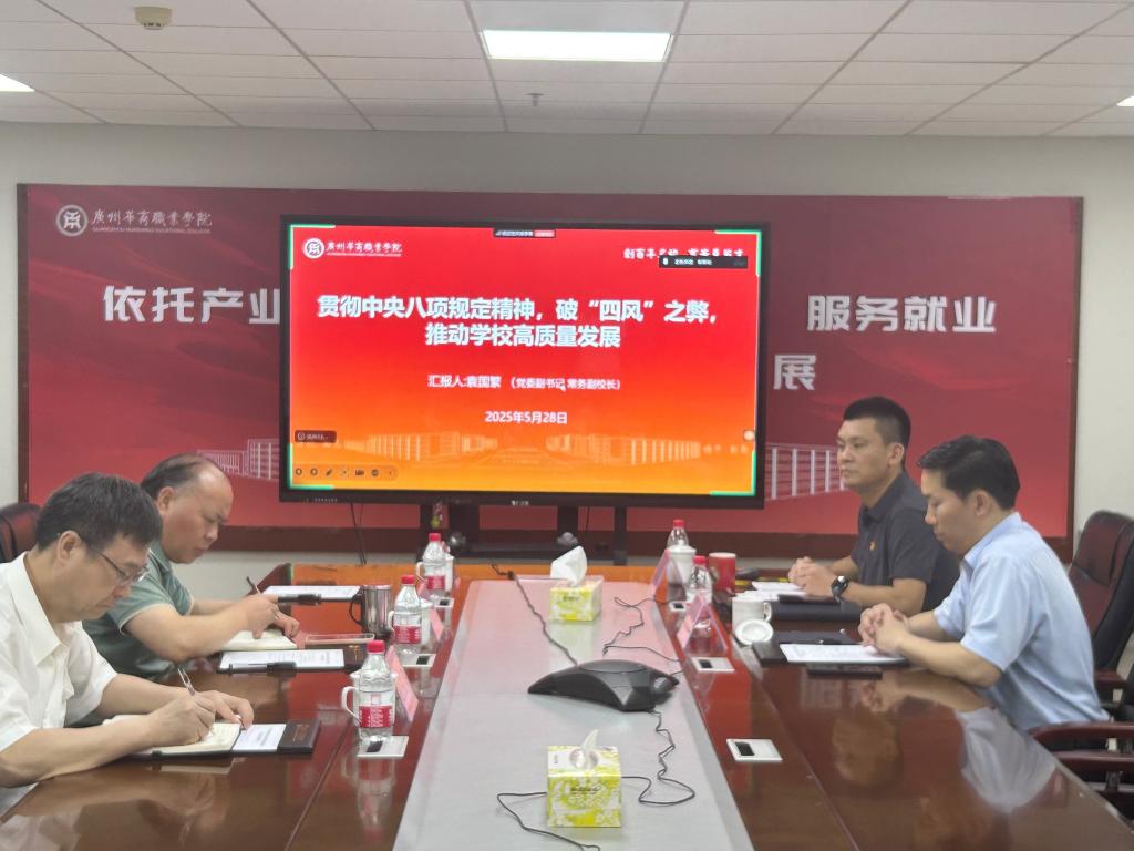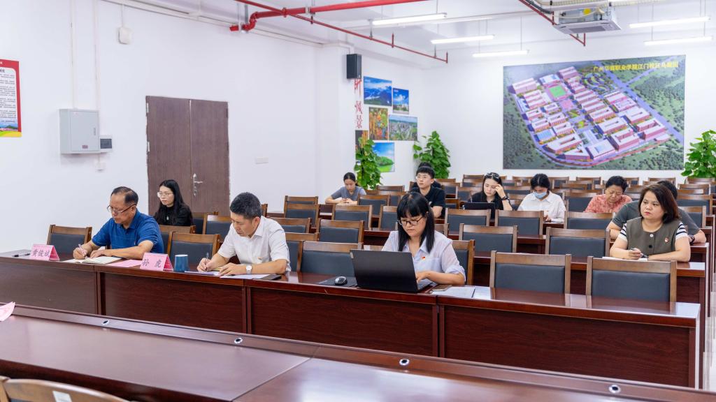 5月28日,beat365中文唯一官网于江门校区217会议室召开深入贯彻中央八项规定精神学习教育读书班暨党委理论学习中心组(扩大)会议。常务副校长袁国繁作专题辅导报告,党委书记翁礼成等学校领导班子成员、中层干部及党委理论学习中心组成员参会,会议由翁礼成主持。