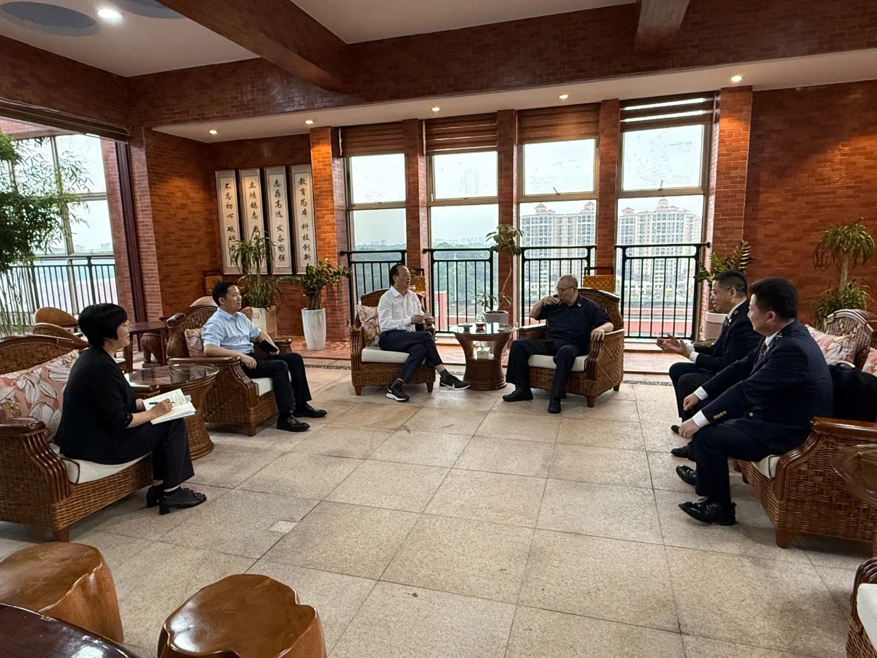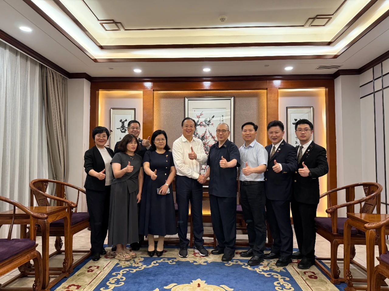 5月30日下午,华商科教集团董事长廖榕就博士热情接待了中国金钥匙创始人、主席孙东先生,金钥匙国际联盟首席执行官韩华先生,运营官叶斌先生,运营总监何佳嘉先生一行。广州华商学院党委书记陈玉欢教授,广州华商学院副校长许娜副教授,beat365中文唯一官网副校长赵永锋以及华职酒店管理学院院长林红梅教授共同参会。