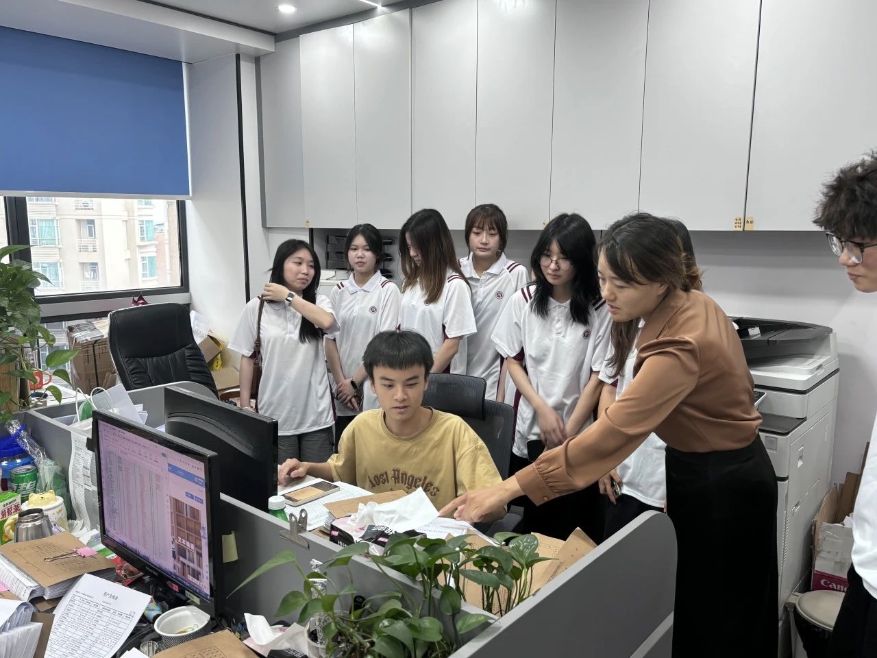 陈少兰老师则组织23级大数据与财务管理产教融合班学生,走进太阳城大酒店财务共享服务中心,进行《财务共享应用实践》课程的真岗实训。学生们亲身参与到财务共享服务的各个环节,通过实际操作,深入了解企业财务共享服务中心的运作模式和工作流程,积累了宝贵的实践经验,提升了工具应用能力与团队协作意识。