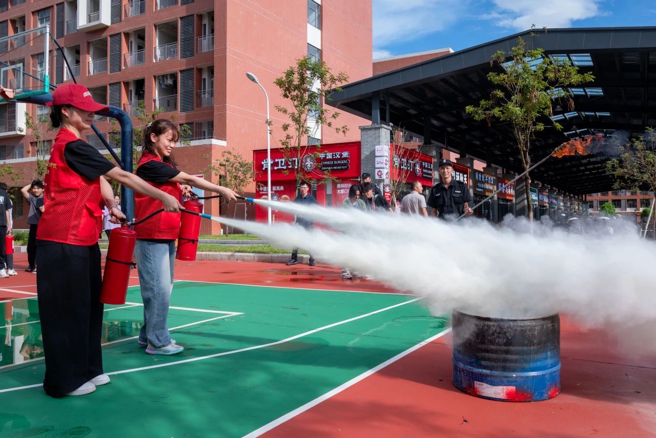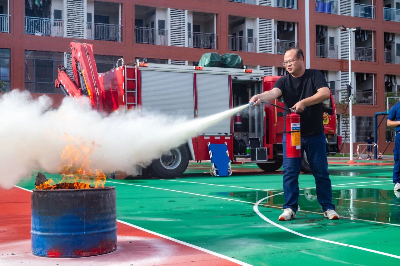 演练最后,校园服务中心组织了灭火器实操培训。师生代表在专业人员指导下,学习掌握“提、拔、握、压”要领,轮流动手扑灭模拟火源,亲身体验初期火灾扑救技能,为本次活动画上圆满句号。