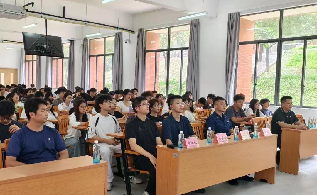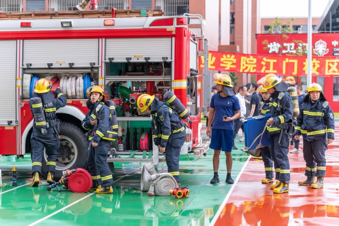 演练以“理论先行、实战检验、能力提升”为核心。下午3时,消防安全知识培训在2号楼104教室展开。新会区消防救援大队双水镇消防救援站站长张建民带来消防员招录宣讲,分享救援经历,弘扬职业精神。副站长张达华则聚焦高校实际,结合典型案例,深入剖析宿舍、实训室等重点场所火灾隐患及防范、扑救要点,重点警示了用电安全、通道畅通、易燃物管理等风险,有效强化了师生的风险辨识能力。
