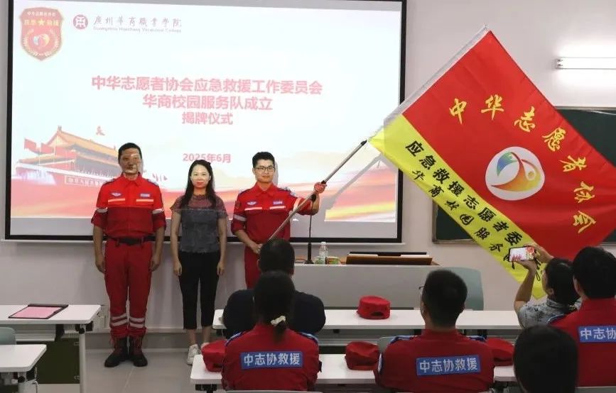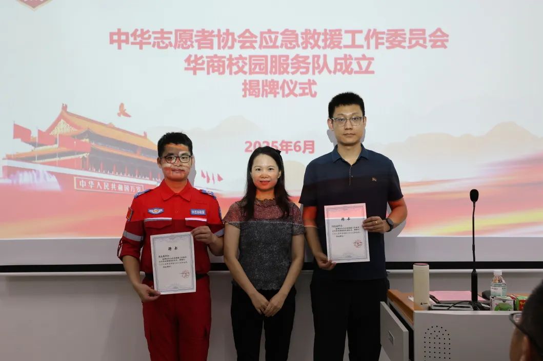 此次揭牌仪式不仅标志着华商校园应急救援服务队的正式启航,更展现了学校对应急安全工作的高度重视。未来,服务队将以专业、高效的救援服务,为校园安全保驾护航,用青春与热血诠释责任与担当,成为校园安全建设中一支不可或缺的青春力量。