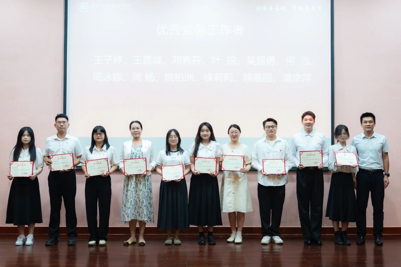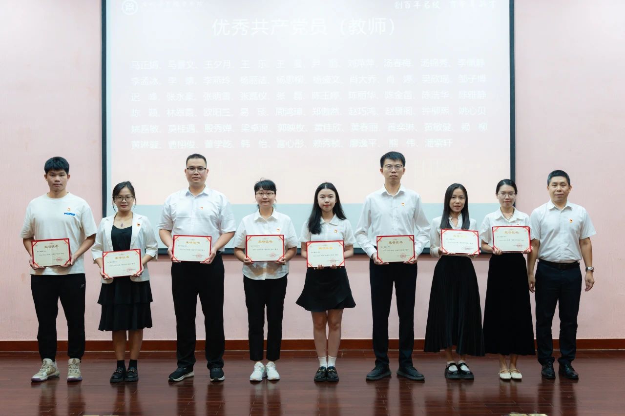 党委书记翁礼成,党委副书记、校长卢坤建分别颁发先进基层党组织(支部)和先进基层党组织(总支)奖项。