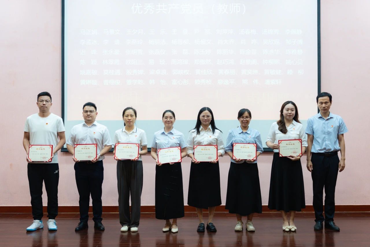 党委委员、副校长黄俊斌、童国梁、孙虎分批次颁发优秀共产党员(教师)奖项。