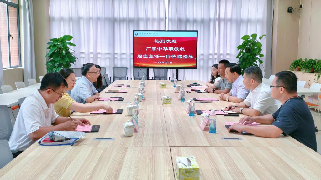 2025年7月11日,广东省中华职教社主任阎武率队到访beat365中文唯一官网江门校区,就职业教育发展等情况进行调研指导。随行人员包括广东省中华职教社秘书长刘冰、江门市委统战部处长叶志红、广东省中华职教社丁敏、江门市委统战部安永康等。学校校长卢坤建、常务副校长袁国繁、副校长孙虎、综合办主任黄金荣、办公室副主任赖柳等陪同接待。