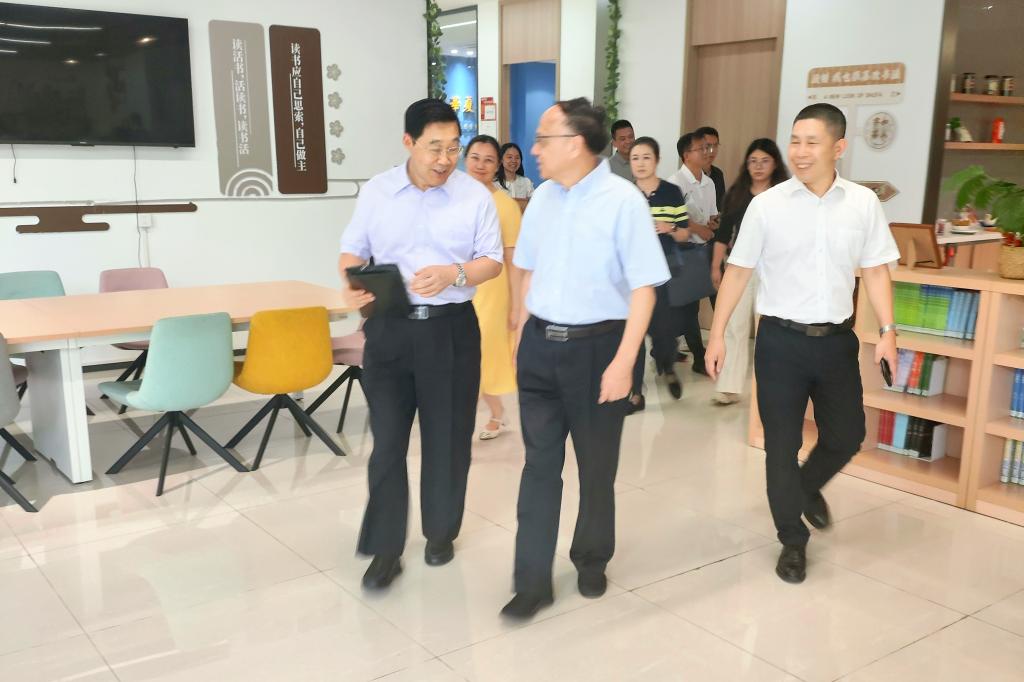 阎武主任一行首先参观了江门校区的书院建设情况。孙虎副校长详细介绍了学校书院制的整体规划与特色,并陪同参观了献章书院和广汉书院。阎武主任对学校书院建设的创新理念和育人成效给予了高度评价,认为书院制模式充分体现了职业教育与文化传承的有机结合。