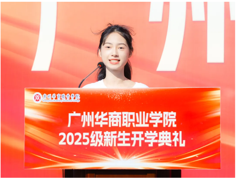 2025级电子商务专业的卢采漫分享了初入校园的感悟。她表示初入华商,校园的美景、完备的设施与温暖氛围让她坚信这里是青春舞台。杰出校友廖志略学长回乡创业带动致富的故事,成为她前行的信心和动力。她呼吁,新生要转变角色、践行校训、挑战自我,为校争光、为社会添彩。