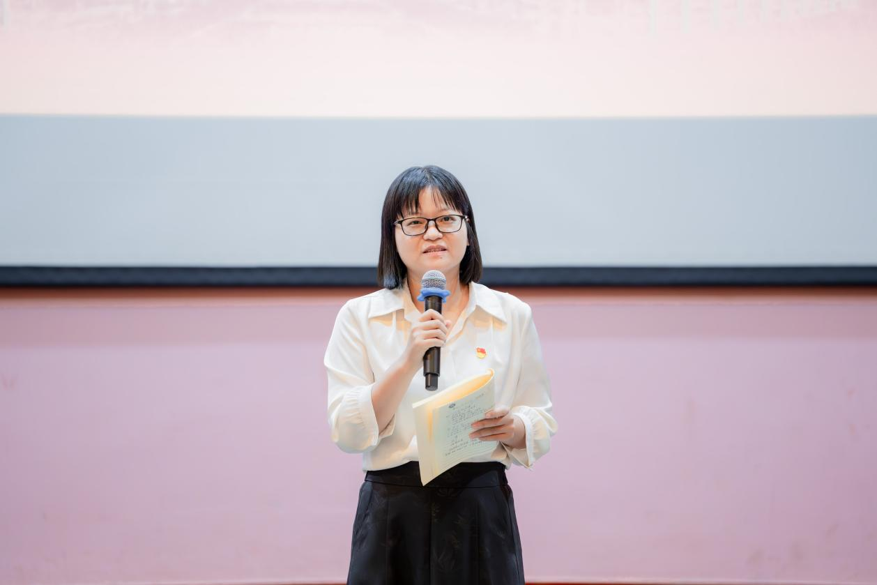 党务工作部部长潘京萍对本次参赛选手的表现予以充分肯定。她指出,各位选手的“微党课”紧扣主题,逻辑严谨、观点清晰、论证层次分明、论据扎实有力,展现出扎实的理论素养和优秀的思辨能力,充分体现了爱党爱国爱社会主义爱校的情怀,以及作为一名中共党员的责任担当。同时,她也提出三点期望:一要聚焦主题,内容讲求精炼扎实、言之有物,增强“微党课”的针对性和实效性;二要提升语言表达,用词准确、逻辑层层推进,增强说服力;三要优化课件设计,做到简洁美观,并在有限时间内合理分配讲析节奏,融入真情实感,提升“微党课”的感染力与共鸣感。