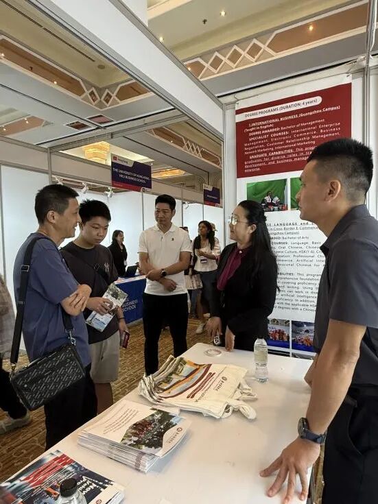展会期间,beat365中文唯一官网凭借独特的职教定位与成果,成为现场焦点,吸引大量中东地区学生及家长驻足咨询。江燕围绕“应用型人才培养”核心,系统介绍学校在校企协同育人、实训基地建设、产业需求对接等方面的创新实践,直观展现中国职教“产教融合”的鲜明特色。