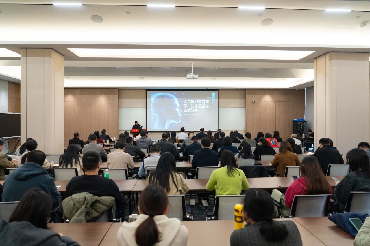 杜安国教授以《人工智能教育变革:生态重塑与范式转移——探索AI时代大学教育新模式》为题,从核心理念重塑、教学模式颠覆、大学组织结构演进、评价与认证体系改革,以及人工智能赋能教育教学实践等多个维度,深入剖析AI时代大学教育的新模式和新挑战。