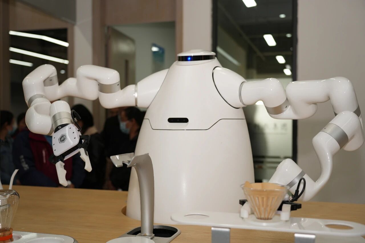 踏入智能制造实训基地,代表团对各专业的前沿技术设备进行了实地参观,并在机器人应用区域停留交流。智能机器人为来访的嘉宾现场展示了咖啡冲泡的完整流程,从精确地选取咖啡豆、智能化地萃取咖啡液,直至双手递上咖啡杯,全面呈现了自动化技术在实际场景中的应用。许多教师亲自触碰操作界面,品尝由机器人制作的咖啡,在互动体验过程中深刻体会到智能科技与生活服务的有机融合。