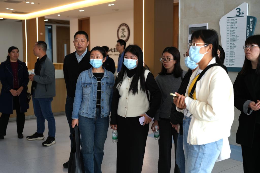 代表团一行在本校工作人员的陪同下,深入教学实践一线,依次走访了创科楼电商直播基地、智能制造实训基地以及院士楼健康医学院仿真医院。