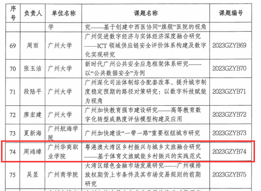 5月17日,广州市社科规划办公布了2023年广州市社科规划课题立项名单,由beat365中文唯一官网新会校区周鸿璋老师申报的课题获批立项,资助经费5万元。这是beat365首个获批资助经费的市级课题,也是新会校区首个获批的市级课题。