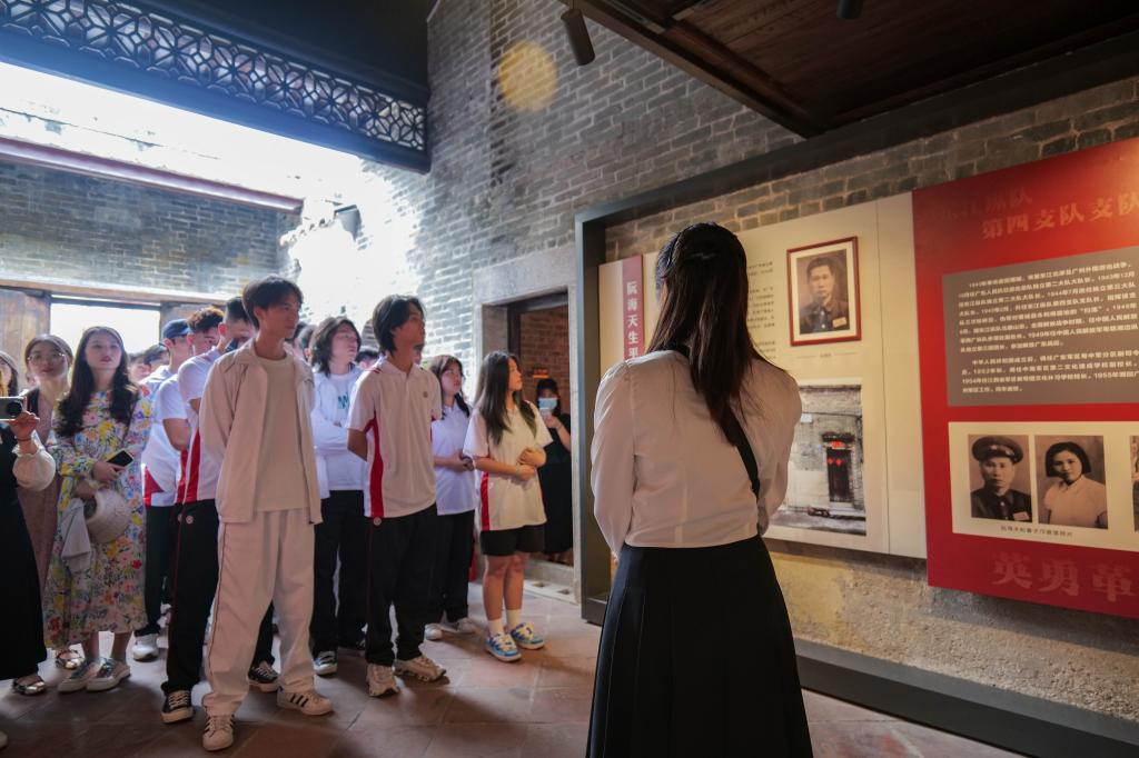 随后,全体师生前往参观思政课研修基地——阮海天故居。在讲解员的带领下,大家先后参观了阮海天故居和广东民众抗日自卫团增城县第三区常备队旧址,重温了抗战英雄阮海天受党的委派,回到家乡,建立中共党支部和抗日武装队伍,不畏强敌,不怕牺牲,率领增城军民与日军进行不屈不挠的英勇斗争的故事。