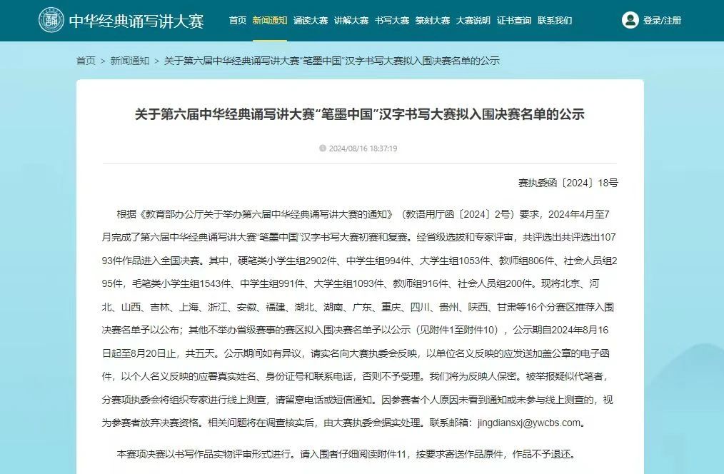 近日,第六届中华经典诵写讲大赛“笔墨中国”汉字书写大赛拟入围决赛名单公示,beat36522级室内设计3班郑烁桦拟入围第六届“笔墨中国”国赛!
