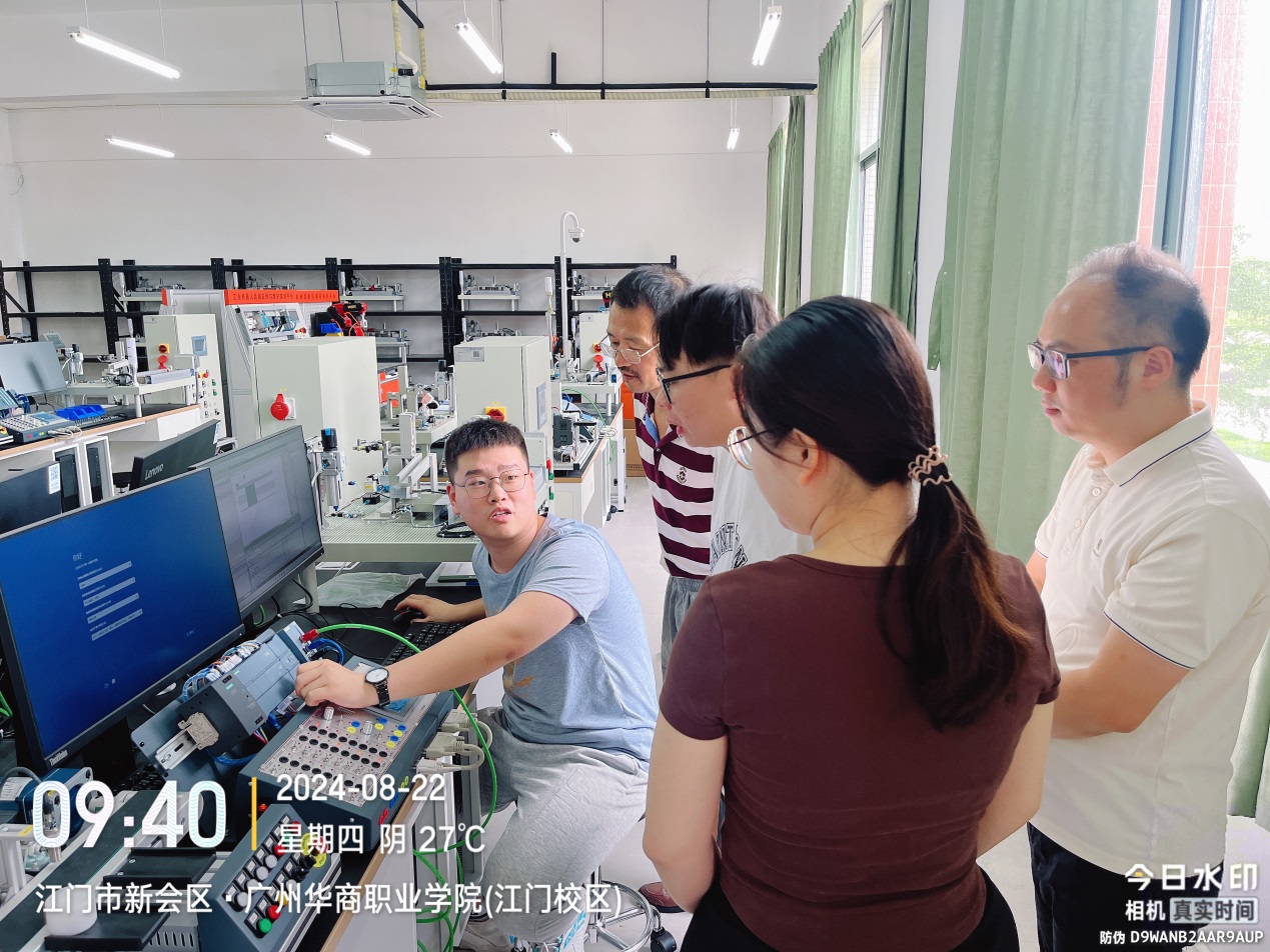 为提高智能制造与汽车学院教师的实践教学能力,根据学院发展定位和人才培养目标,2024年8月20日至8月24日,学院组织机电骨干教师开展师资培训。特聘请山东莱茵科斯特教育培训中心电气组高会泽来beat365中文唯一官网(江门校区)工科教学大楼204室开展培训,学院院长祝常红、学院机电骨干教师卢正亚、王虎、侯振洪、李国育、沈放、李健雄及林容芳等多名教师参加了培训。