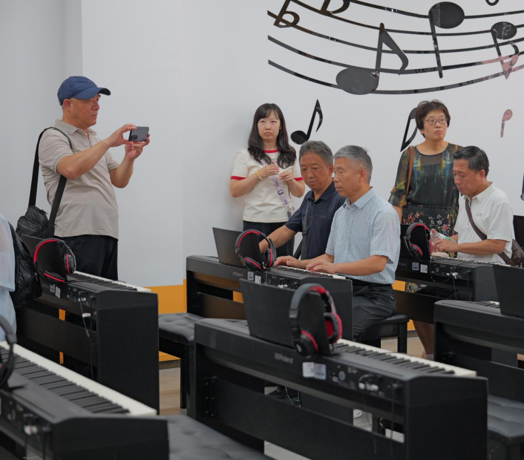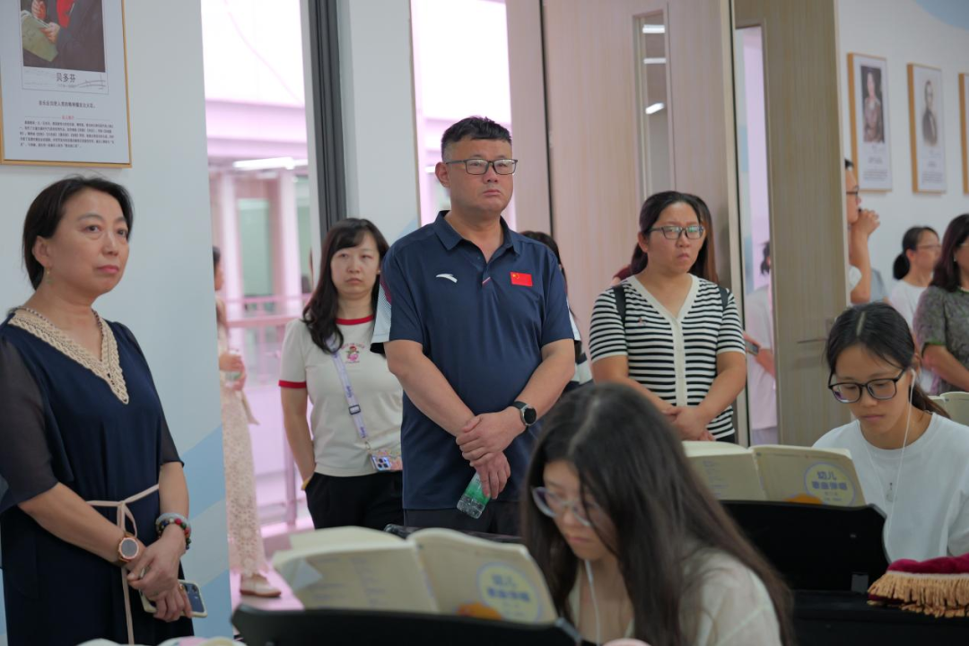 随后,刘玉娟院长陪同鲍校长及老师们重点参观了创科906钢琴教学实训室,刘院长表示目前实训室能满足以学前教育专业、早期教育专业、婴幼儿托育服务与管理专业的岗位能力为导向的实践教学与实训需求,为学生提供全面发展的舞台。专任教师李琴英老师详细介绍了智能钢琴教学系统,通过科技实现智能教学、兴趣教学及智能陪练等功能,有效提升了学生的学习效率与实训效果。