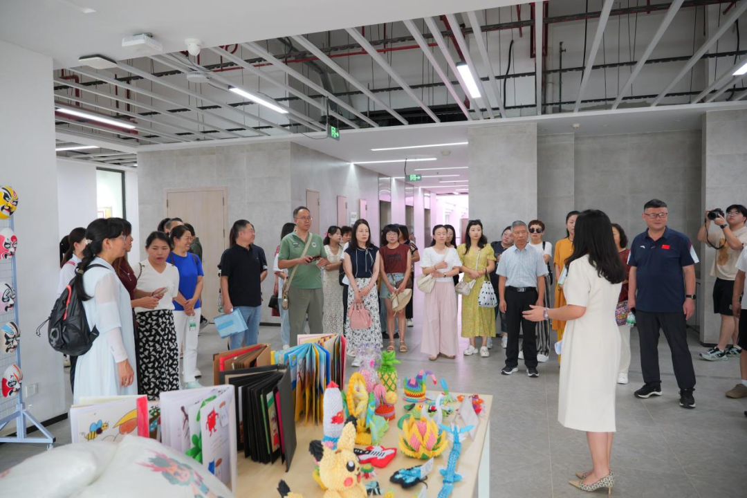教育学院一直以社会需求为导向,能力培养为主线,构建了多学科交叉、专业互补的教育平台。长治幼儿师范高等专科学校鲍志煊校长一行首先参观了教育学院学前教育专业学生作品展及实训室,教育学院实训教师马庆向长治幼专的领导和教师们介绍了我院学生手工绘本、文创产品设计、非遗手工制作、传统剪纸等不同类型的作品。老师们被学生们精美的作品所吸引,纷纷驻足欣赏。他们表示,通过实训不仅能够提升学生的美术技能,还能够培养学生的创造力和审美能力,对学生的全面发展非常有益。