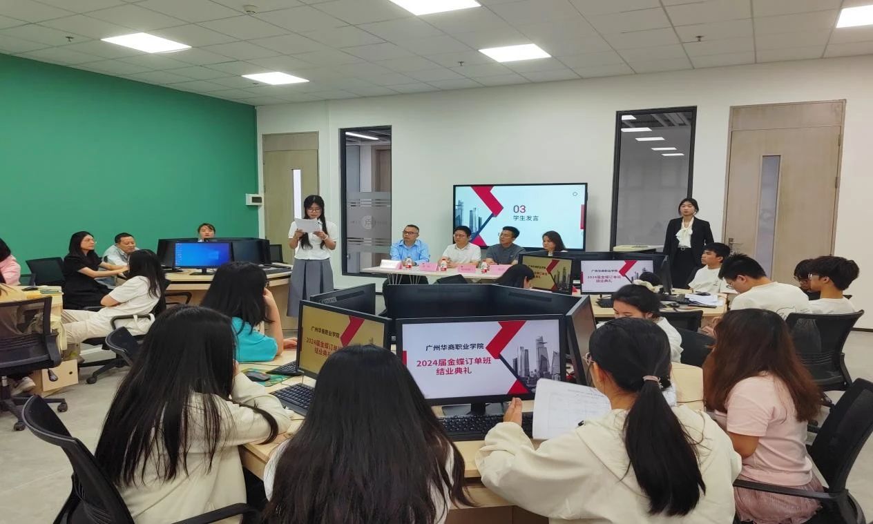 会议伊始,通过播放短视频的形式展示了金蝶订单班学生自2024年10月以来的企业实践课程期间日常完成的工作任务以及企业、学校导师双指导的过程。紧接着由学生代表张宝怡同学做企业实践总结,她首先对学院的课程安排和企业给予的真账实操机会表示衷心的感谢,同时对企业实践的收获作了全面的总结,并表示企业实践让同学们顺利完成了从理论到实践的跨越。