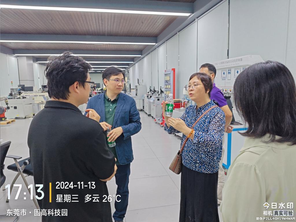 代表团参观了固高科技在东莞松山湖的XbotPark机器人基地总部、固高科技和茵赛普科技有限公司在运动控制器、驱控一体、电机驱动器、机器视觉与机器人定标系统、软件平台、工业自动化组件和教学装备等方向的核心产品、研发中试车间和工业机器人控制与应用实验室。