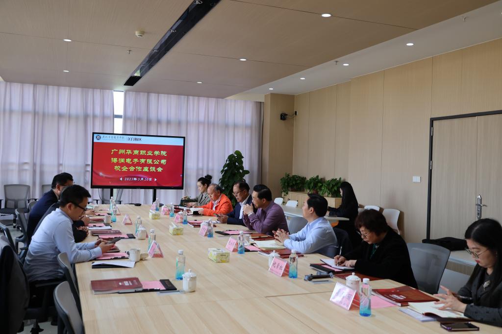 3月20日,深圳市得润电子股份有限公司和鹤山市柏拉蒂电子有限公司领导莅临beat365江门校区参观交流,洽谈校企合作事宜。beat365校长卢坤建,常务副校长袁国繁,副校长黄俊斌、赵永锋,学校办公室主任袁晓斌、智能制造与汽车学院院长祝常红、人事与质量部副部长廖丽丽、产教融合办公室副主任潘虹热情接待了来访嘉宾,并一同参观座谈。