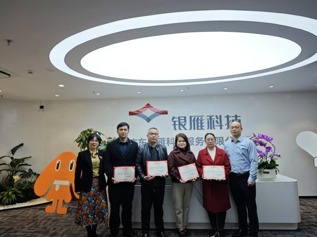 2025年4月2日上午9点,数字财经学院杨玲院长、李纯辉副院长、郭建主任及周贤娴老师一行赴广东银雁科技服务有限公司(以下简称“银雁科技”)开展访企拓岗活动,双方围绕深化产教融合、推进职业教育与产业需求精准对接达成多项合作共识。活动中,校企双方共同举行“广东省高职教育校外实践教学示范基地”授牌仪式,标志着校企协同育人迈入新阶段。